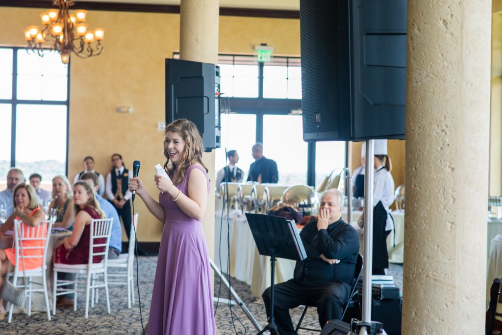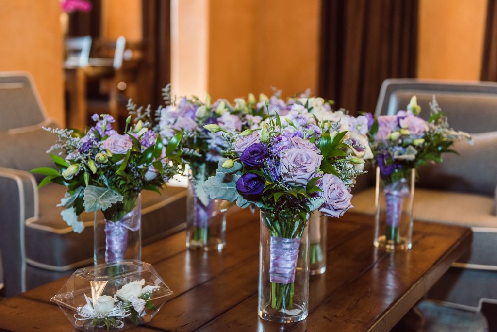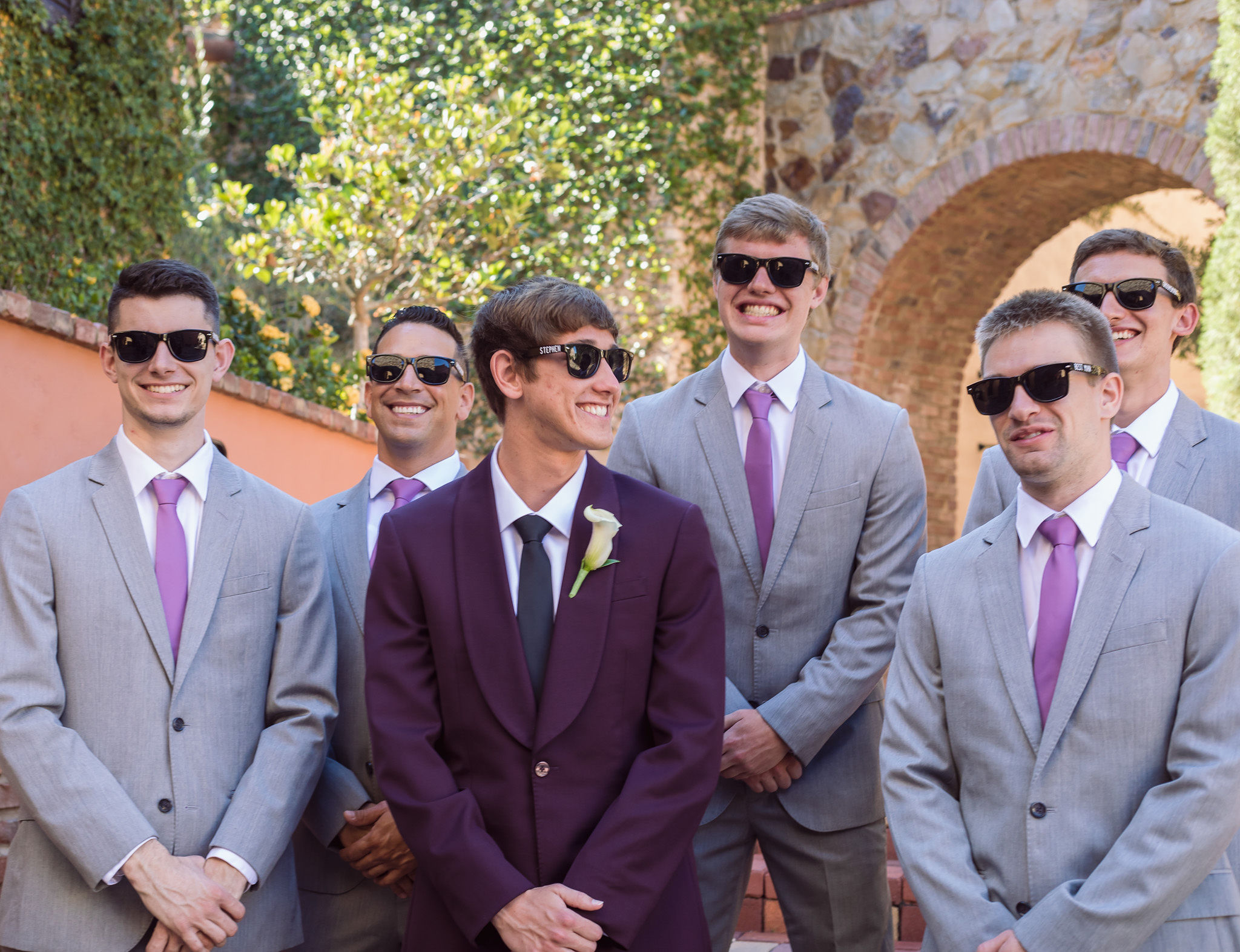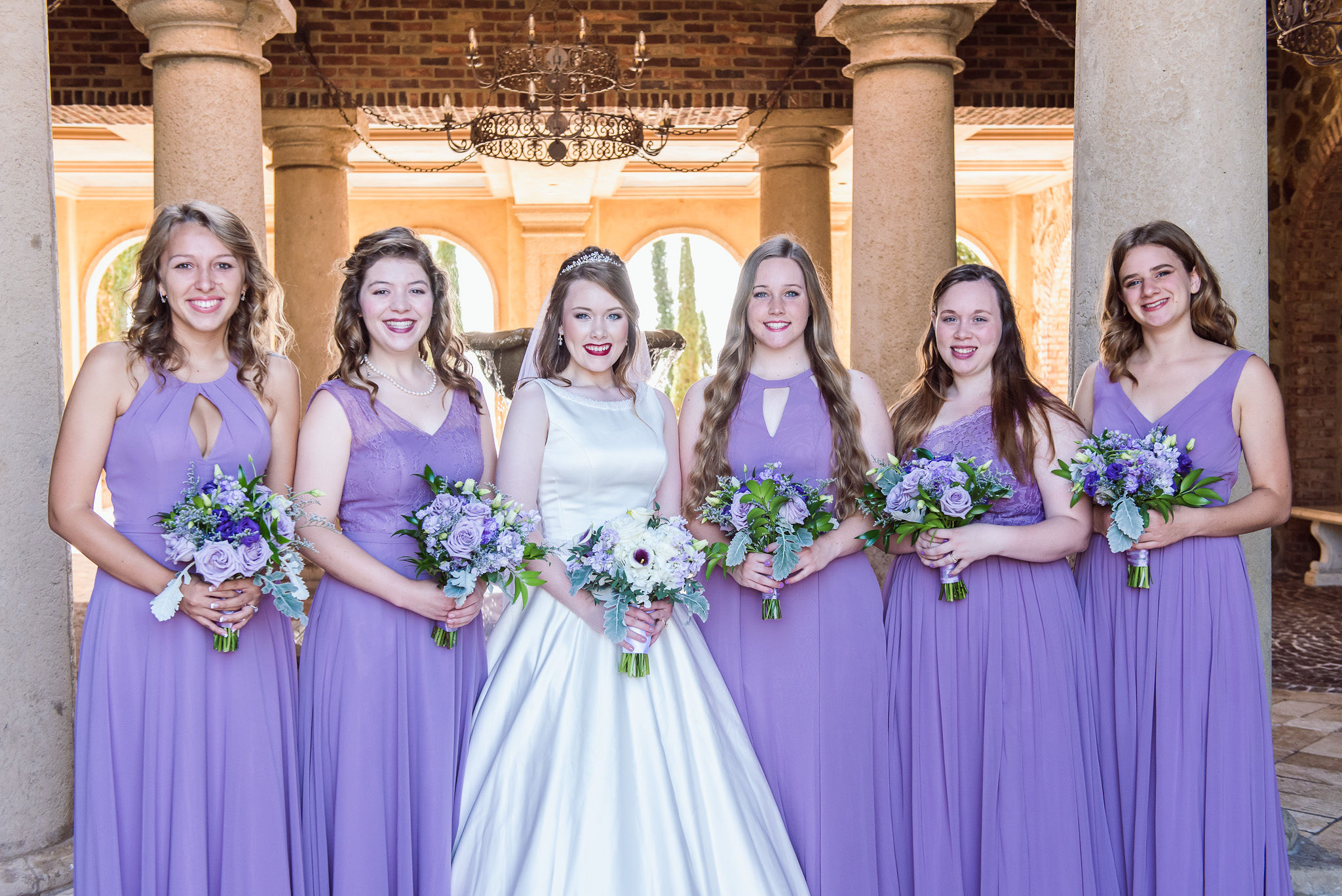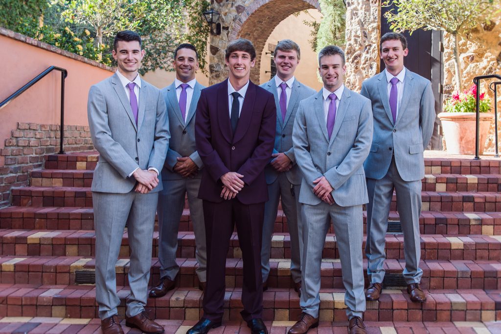 Ashley began her day by getting ready at Bella Collina with her bridesmaids. Ashley dressed in a gorgeous white gown, with her bridesmaids in lavender dresses. The groomsmen wore grey suits and purple ties, with the groom in a full purple suit.