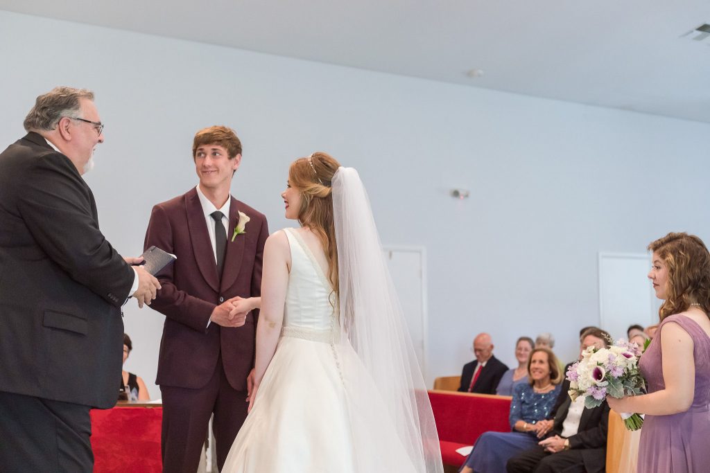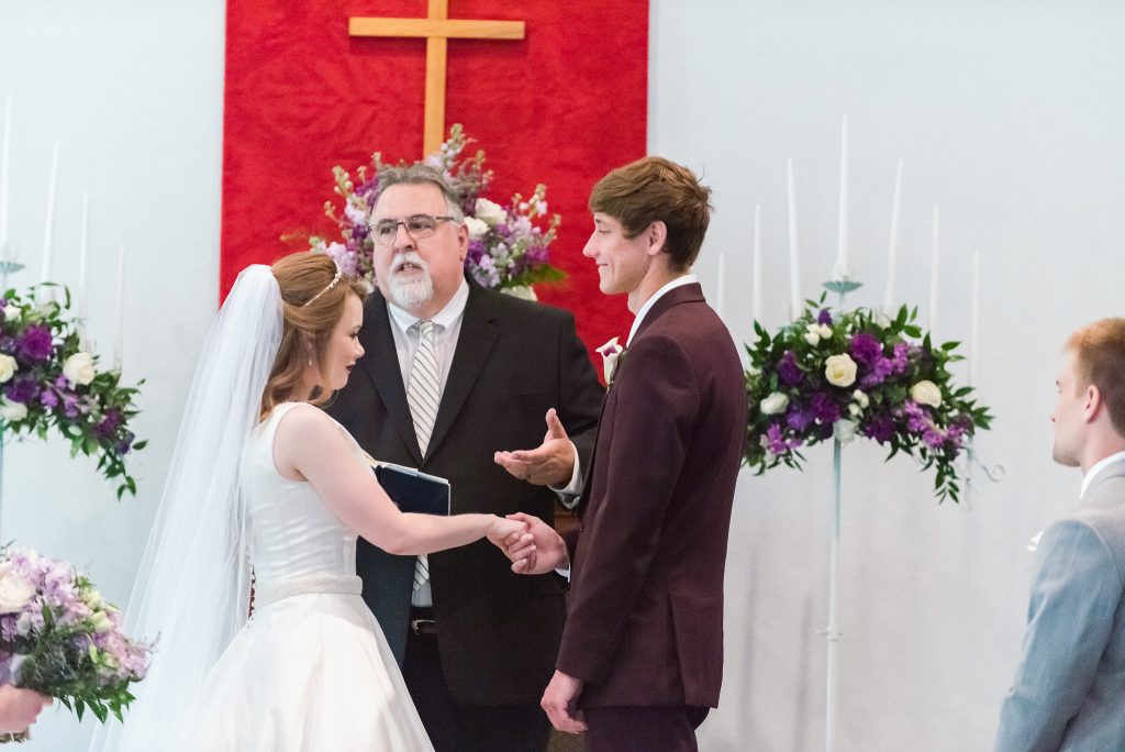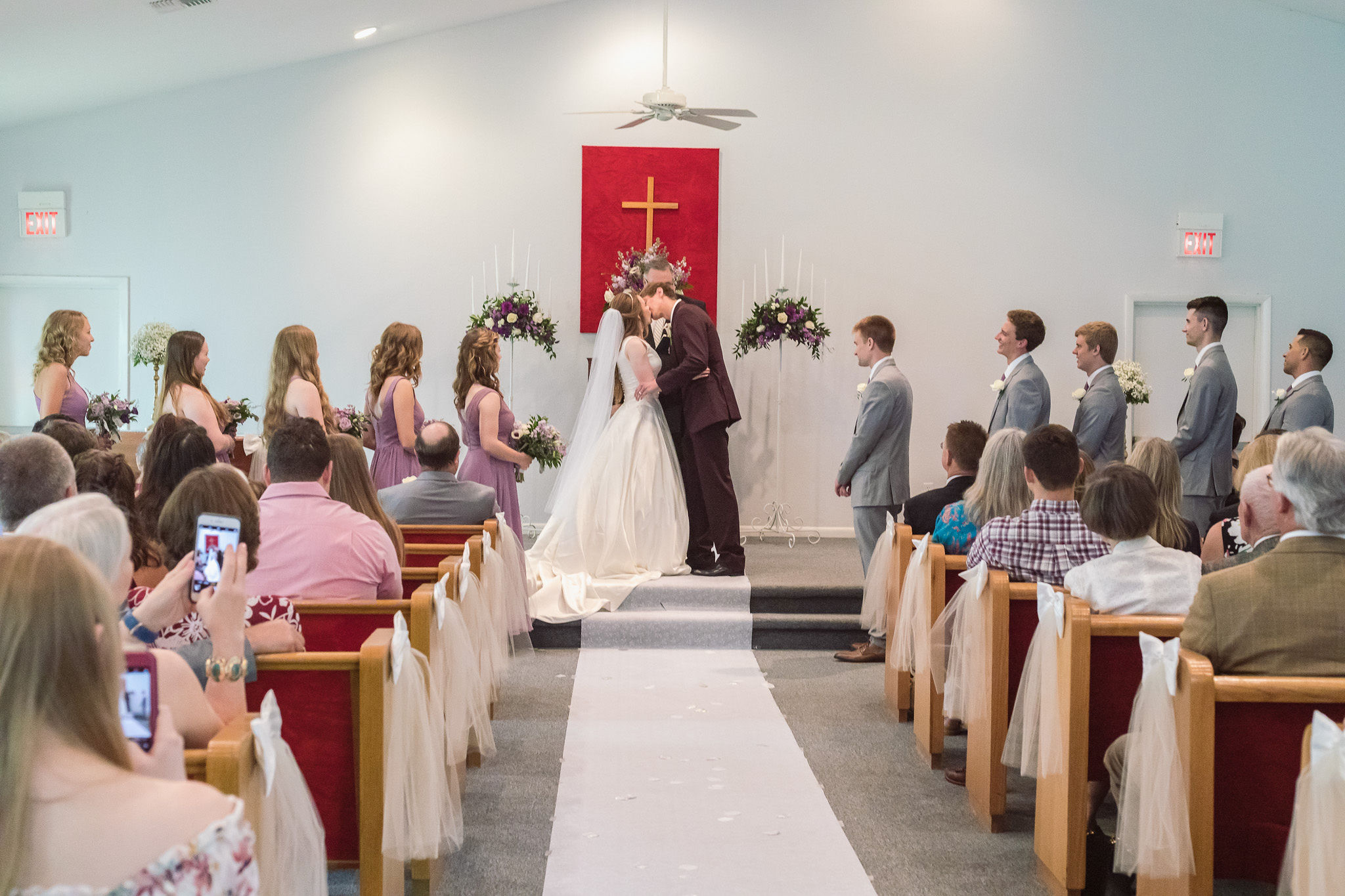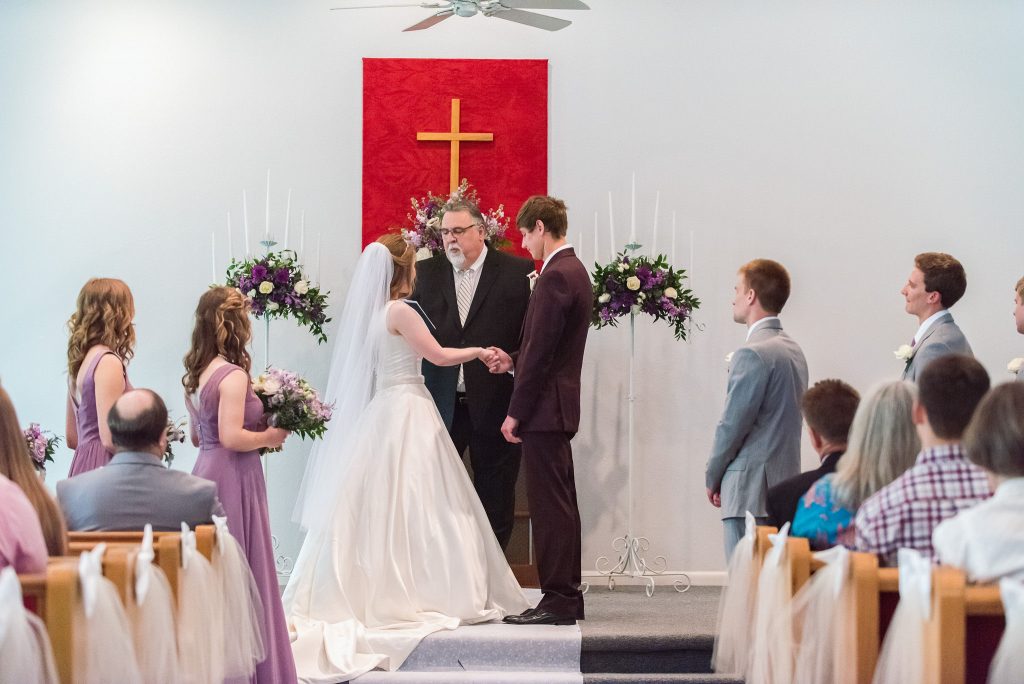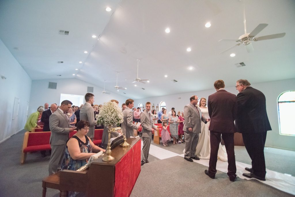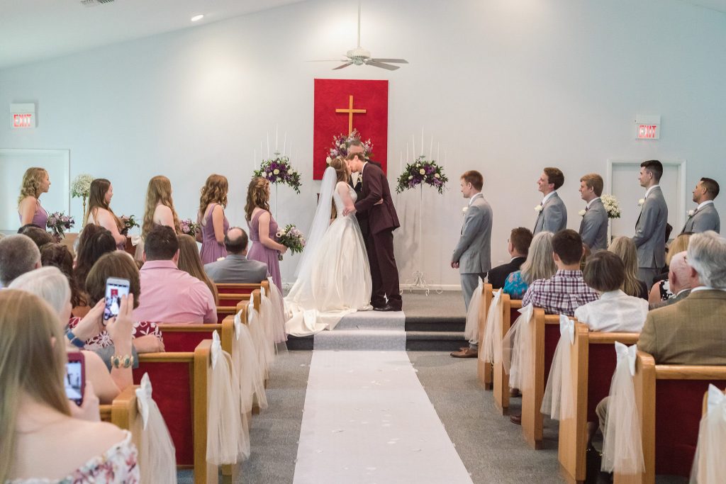 The ceremony took place at the Grace Baptist Church. Ashley was walked down the aisle by her father, where she joined Stephen. The ceremony was officiated by Pastor Burguet, who led the two through vows, rings, and ultimately, their first married kiss!