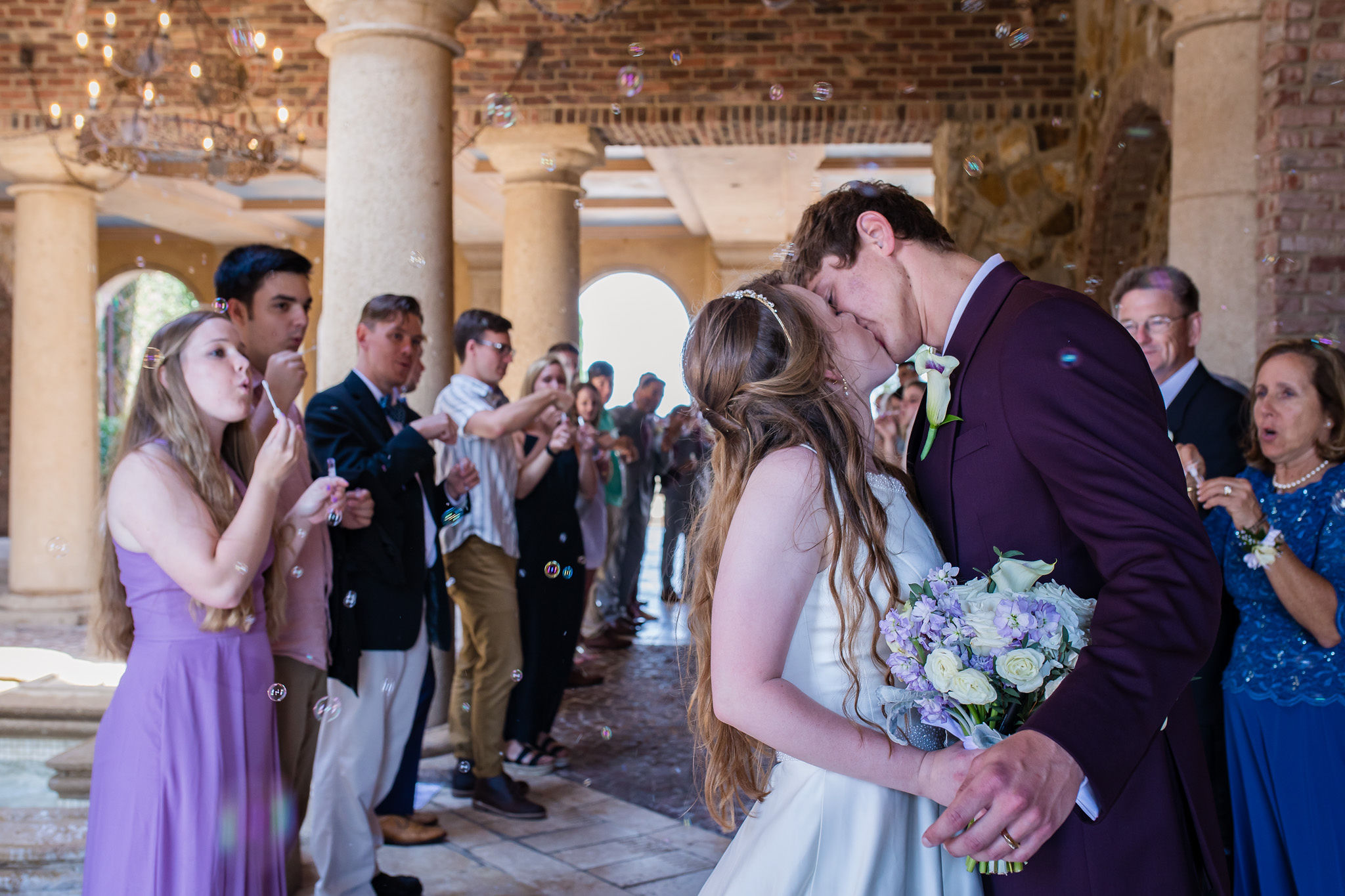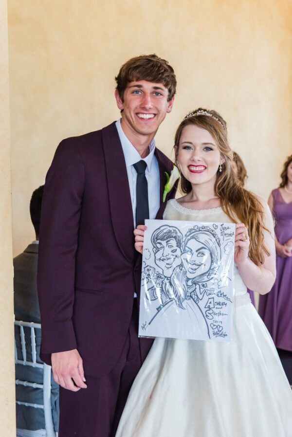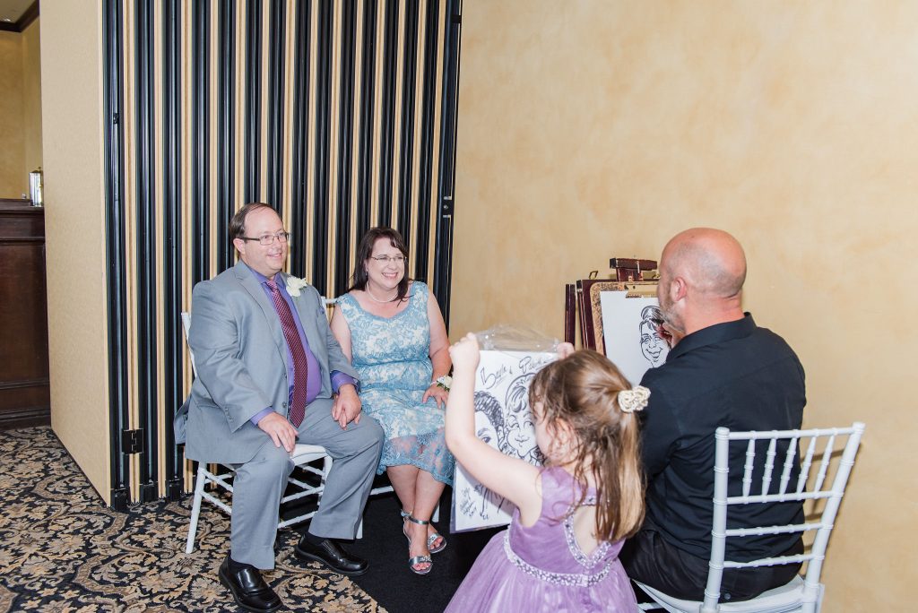 Everyone enjoyed the delicious food, then watched as the bride and groom shared parent dances and the cutting of the donut “cake”. As Jazzway Express led the dancing, guests were welcome to enjoy the fun addition of a caricature artist from Cartoon You! The reception ended with a bubble-blowing send-off, which was the perfect whimsical end to their beautiful day.