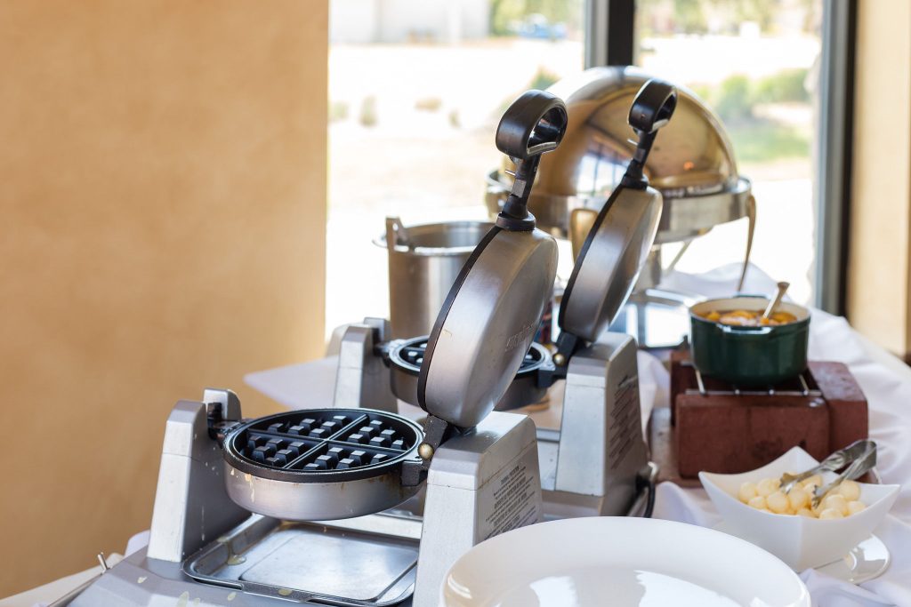 Once the guests had taken their seats, the band, Jazzway Express, struck up a tune, and Ashley and Stephen shared their first dance on the floor. After a couple toasts, the brunch buffet was opened to guests, featuring a multitude of pastries and a waffle bar!