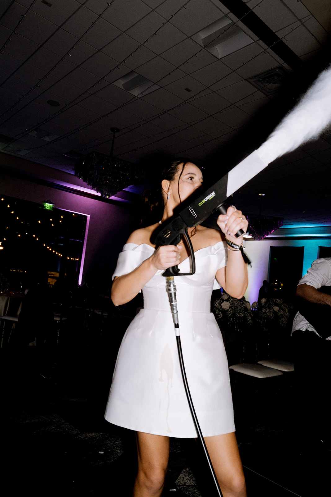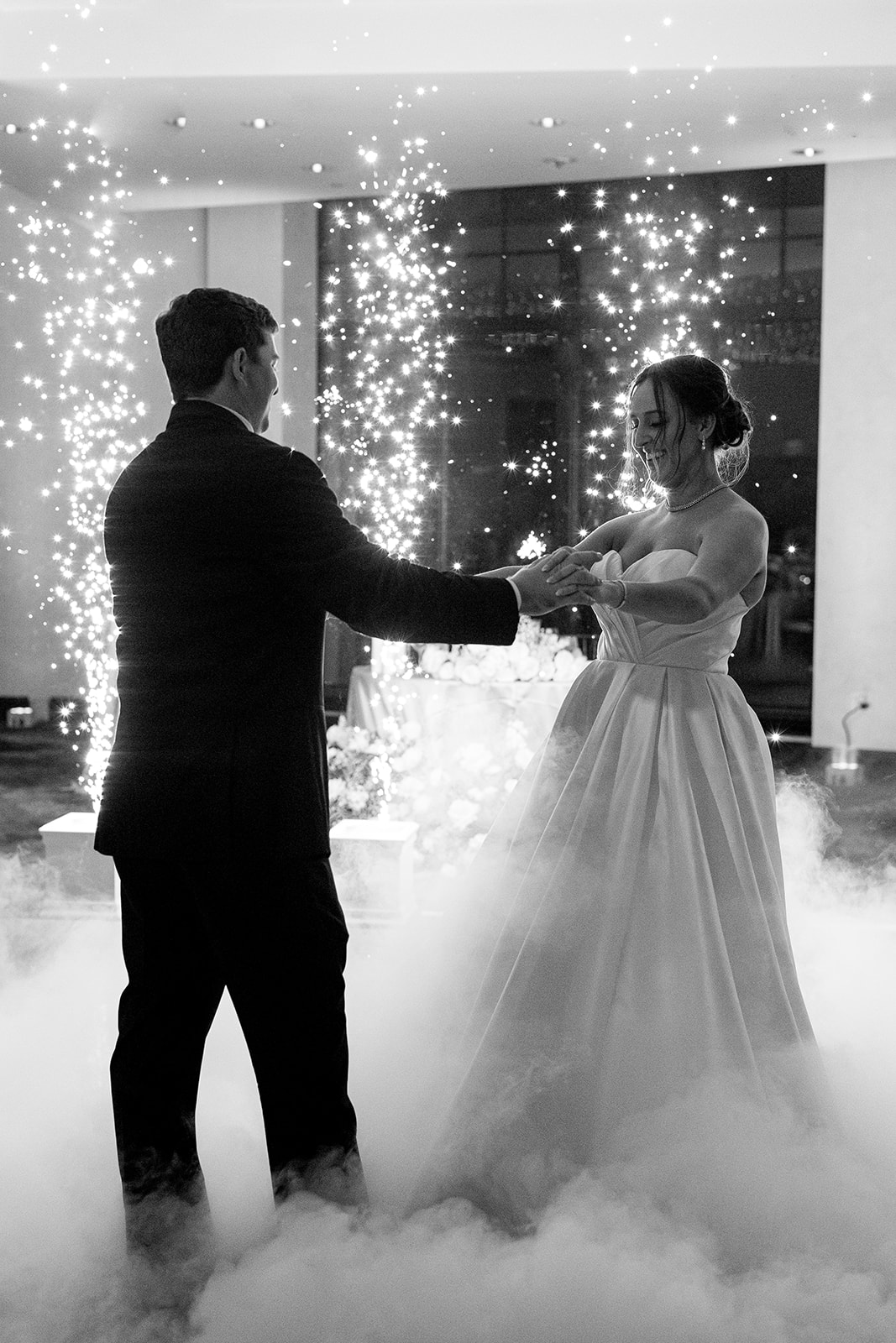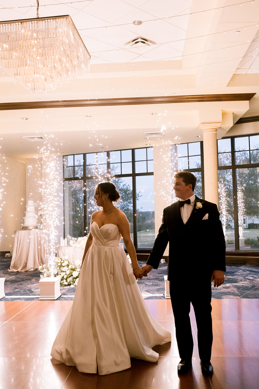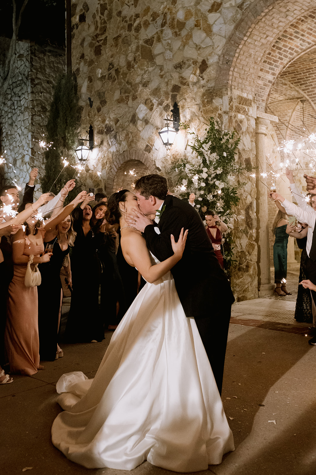 Their timeless white rose wedding night ended with a sparkler exit out of the beautiful atrium, where they headed back to the JW Marriott Grande Lakes in their classic getaway car.