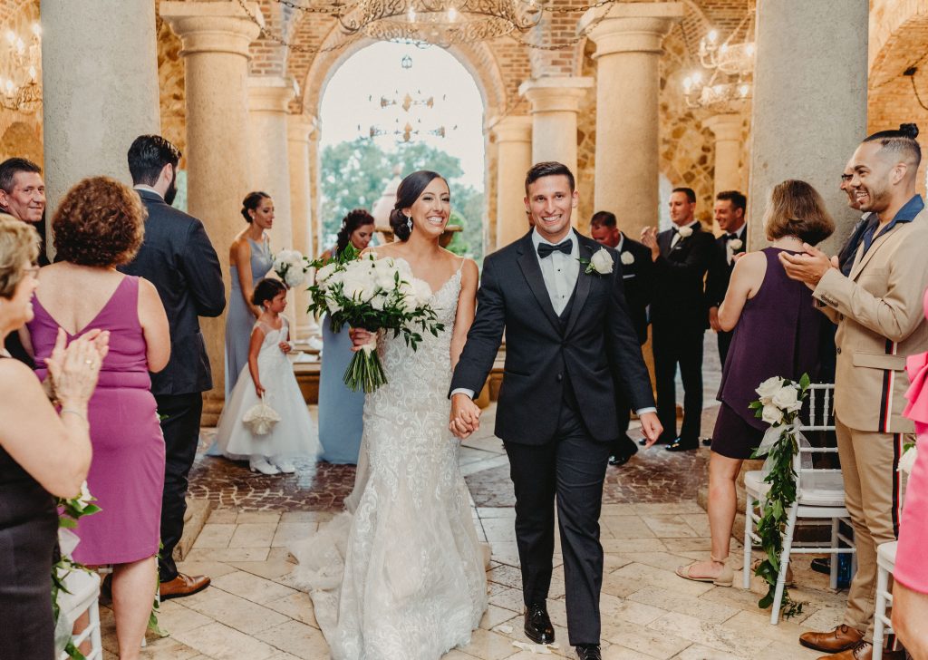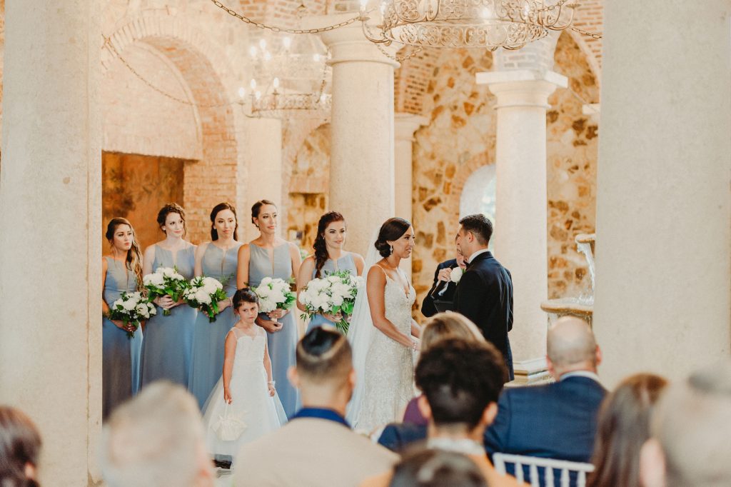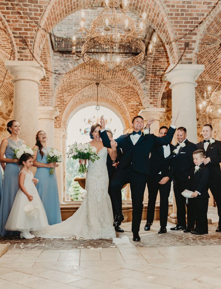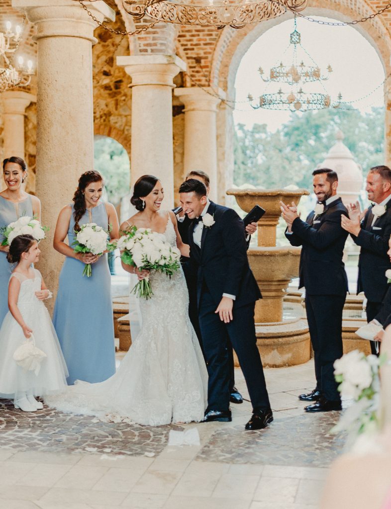 Our next wedding took place in July of 2019, at the beautiful venue Bella Collina. Taylor and Cody held a classic blue and white wedding, and, as it was Florida, there was an unexpected appearance by some drizzles. Fortunately, our happy couple took advantage of the situation for some fun and unique photos, captured by the fabulously talented Dewitt for Love Photography.