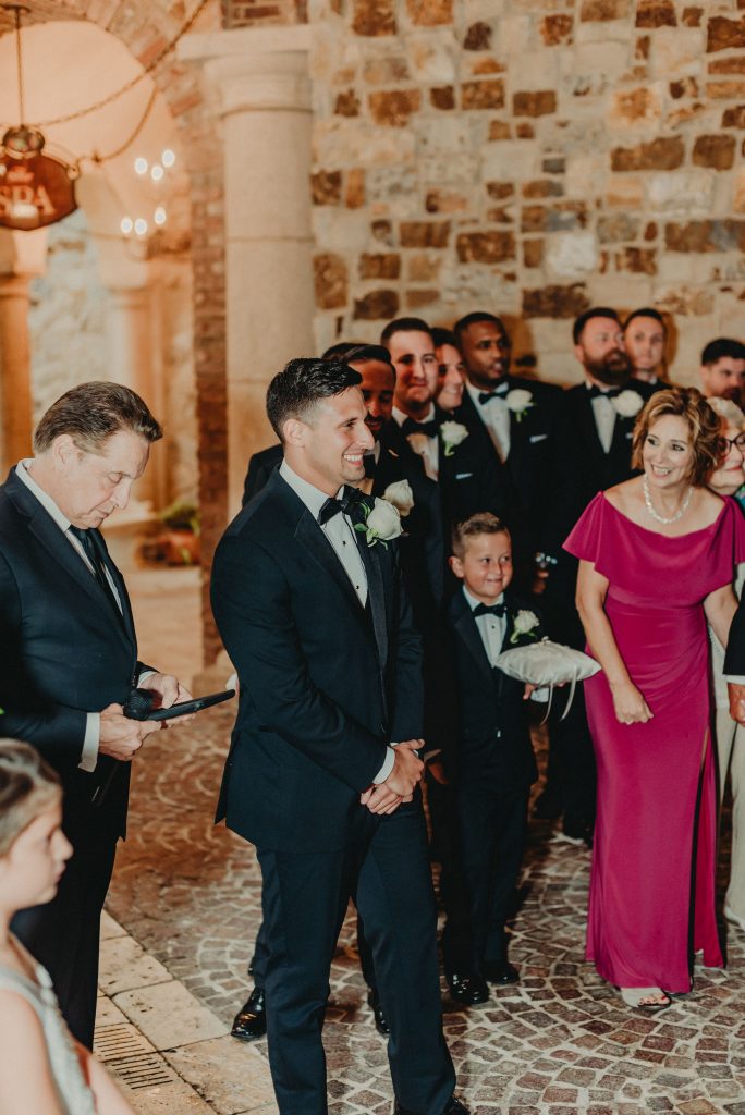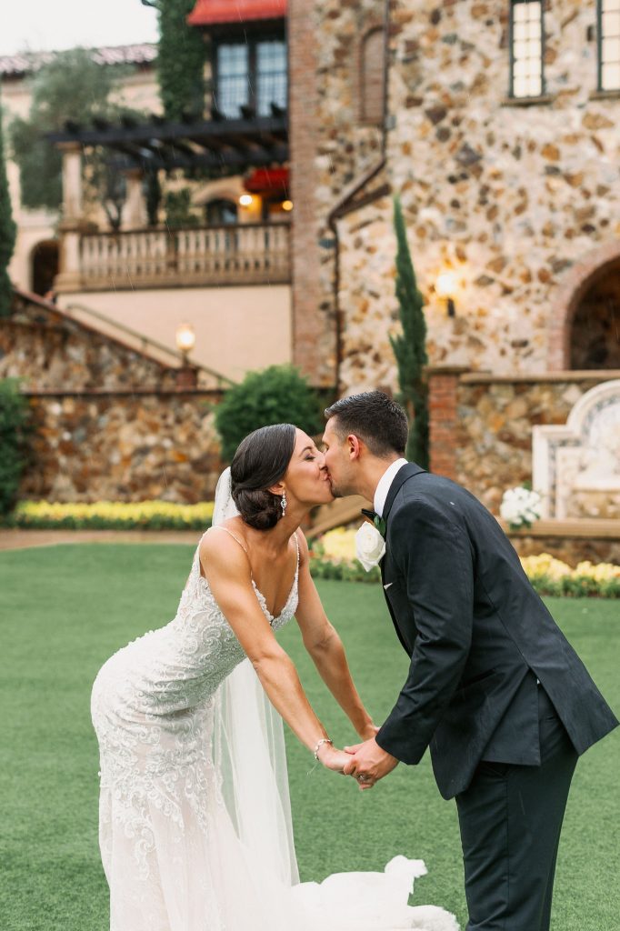 The ceremony was held on the terrace, which offered cover from the rain. We love to see couples take advantage of the backdrop of Bella’s gorgeous fountain terrace. With the underscore of the quartet, Paint it Black, Taylor and Cody made their trip down the aisle. They shared their vows, exchanged rings, and kissed as they were pronounced husband and wife. The ceremony was ended with a traditional breaking of a glass.