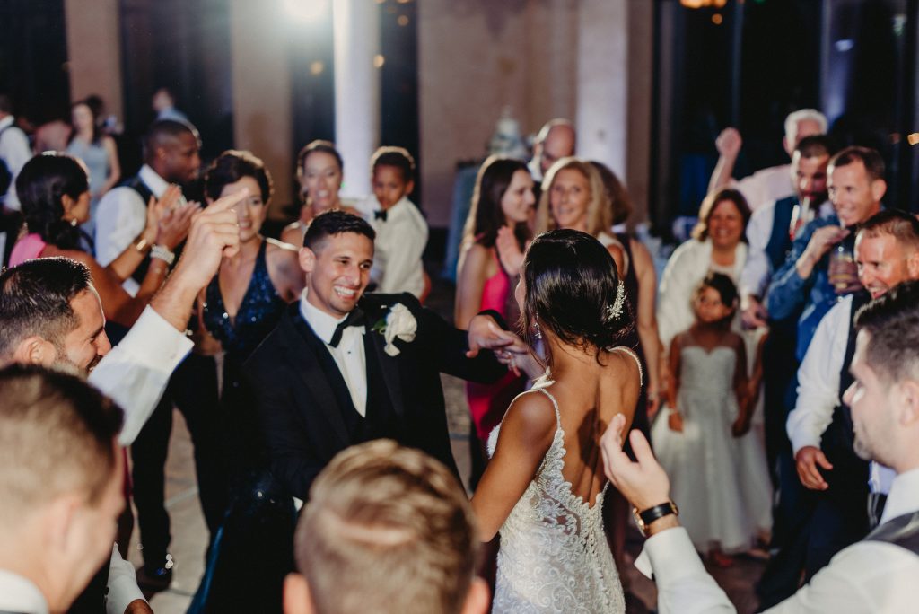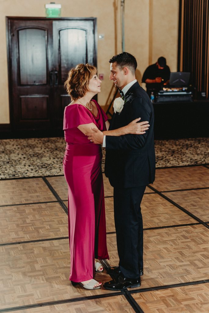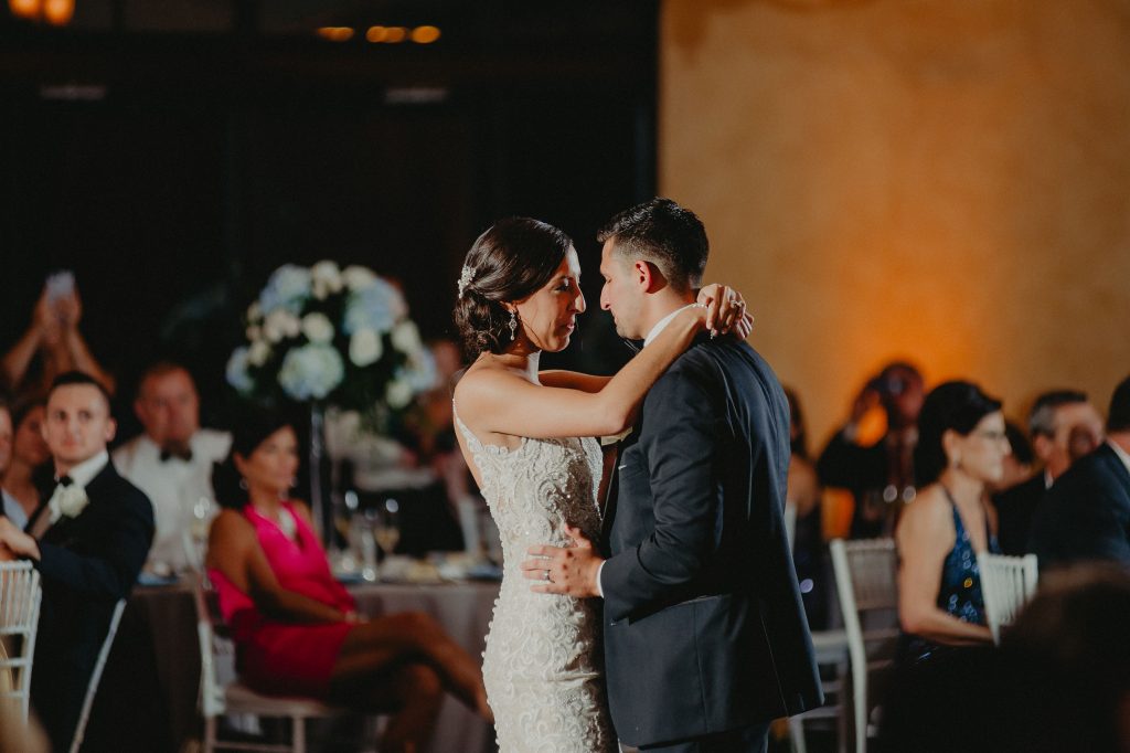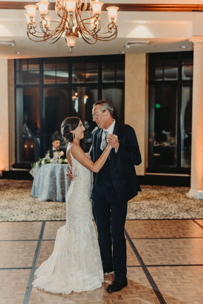 The reception began with the introduction of the newlyweds, followed by their fun first dance. As salads were served, Taylor and Cody heard toasts from their parents and friends. Dinner was then served, catered by Bella Collina. After enjoying their meals, Taylor shared a dance with her father, and Cody shared a dance with his mother.