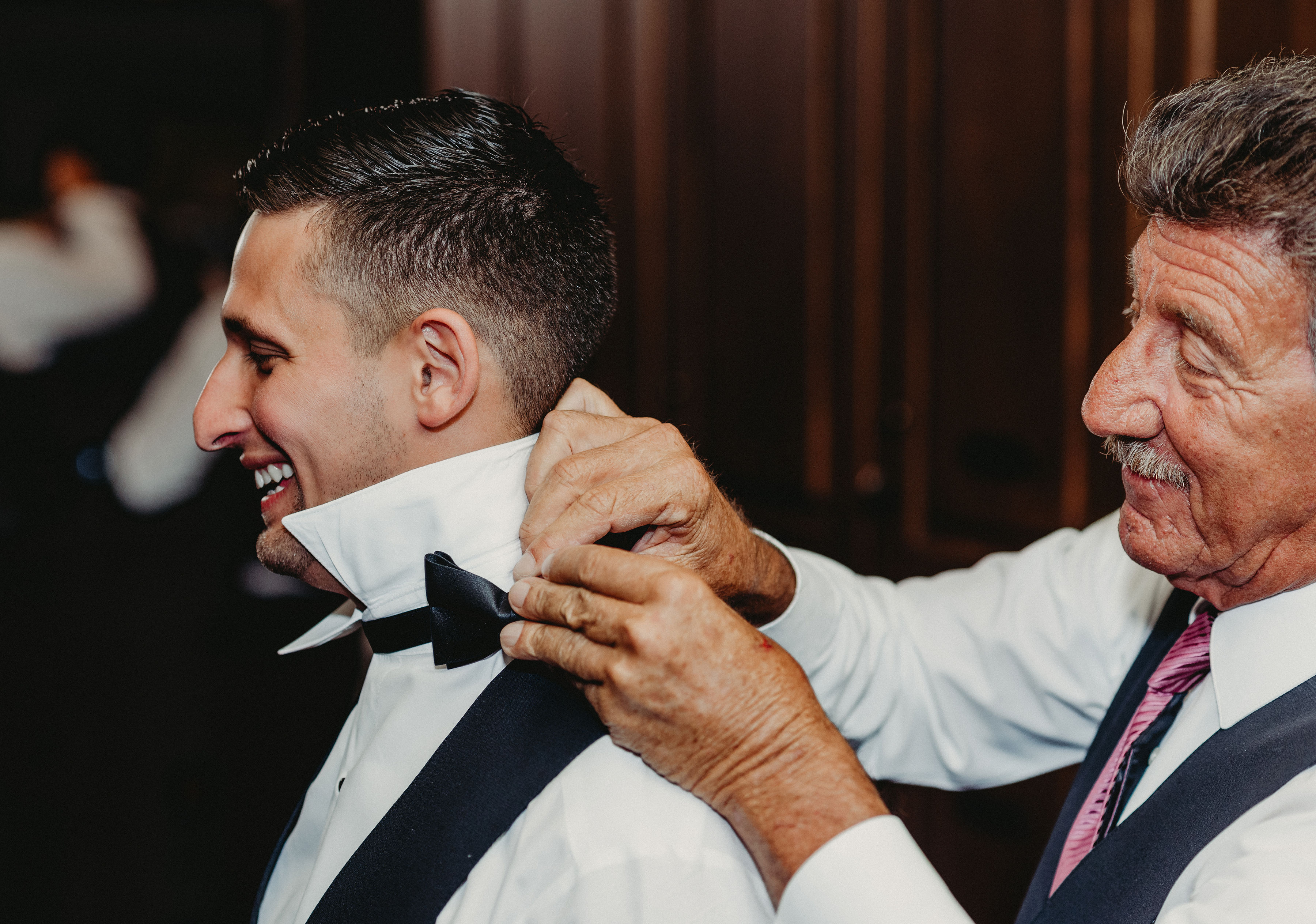 The day began with hair and makeup for the ladies, with hair done by NYLA Hair Studio and makeup done by Yuri from the Bella Collina Spa. Taylor then got dressed in her beautiful lacy white gown, with the bridesmaids in pale blue dresses. Meanwhile, the gentlemen dressed in the perfect classic look: tuxedos and bowties.