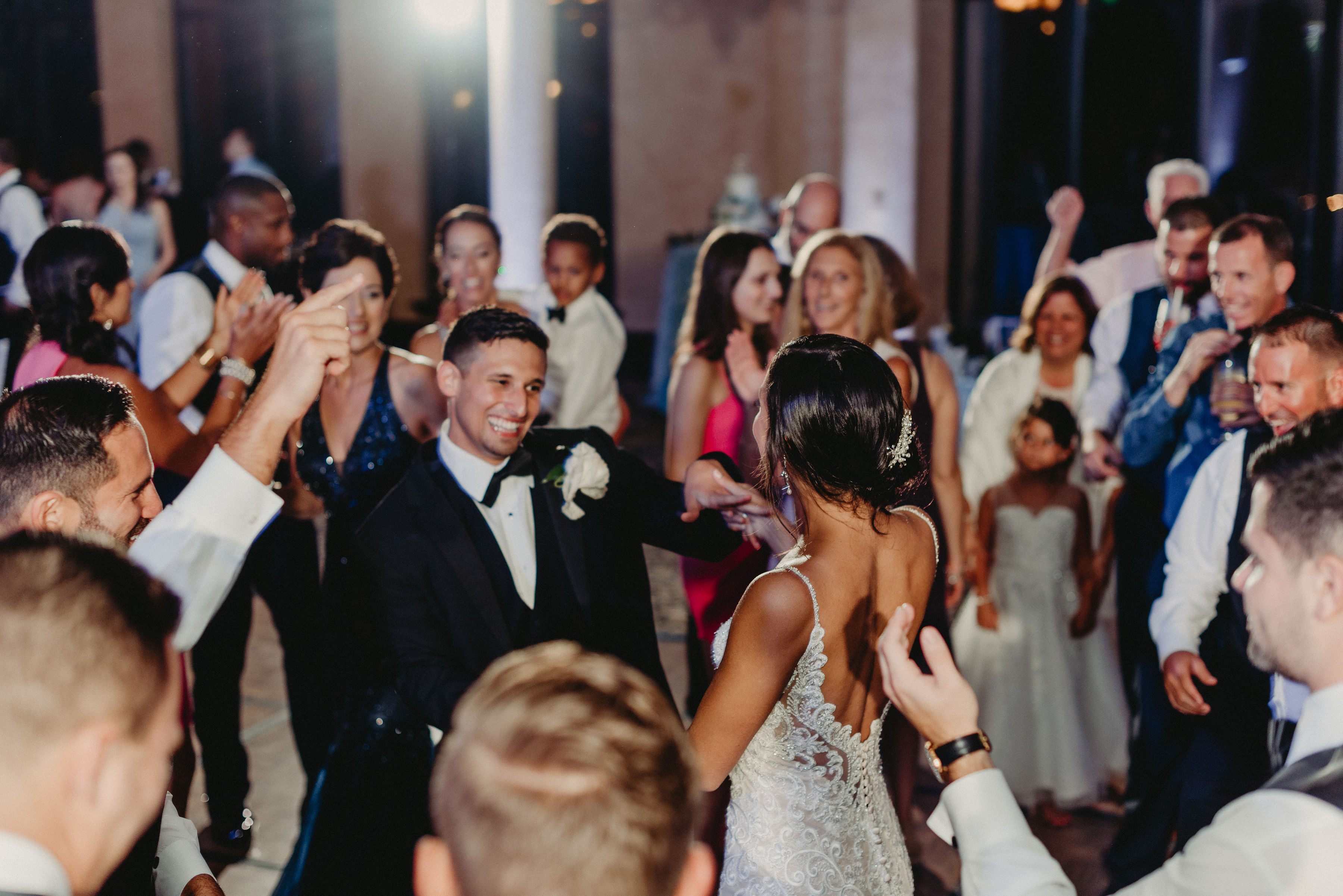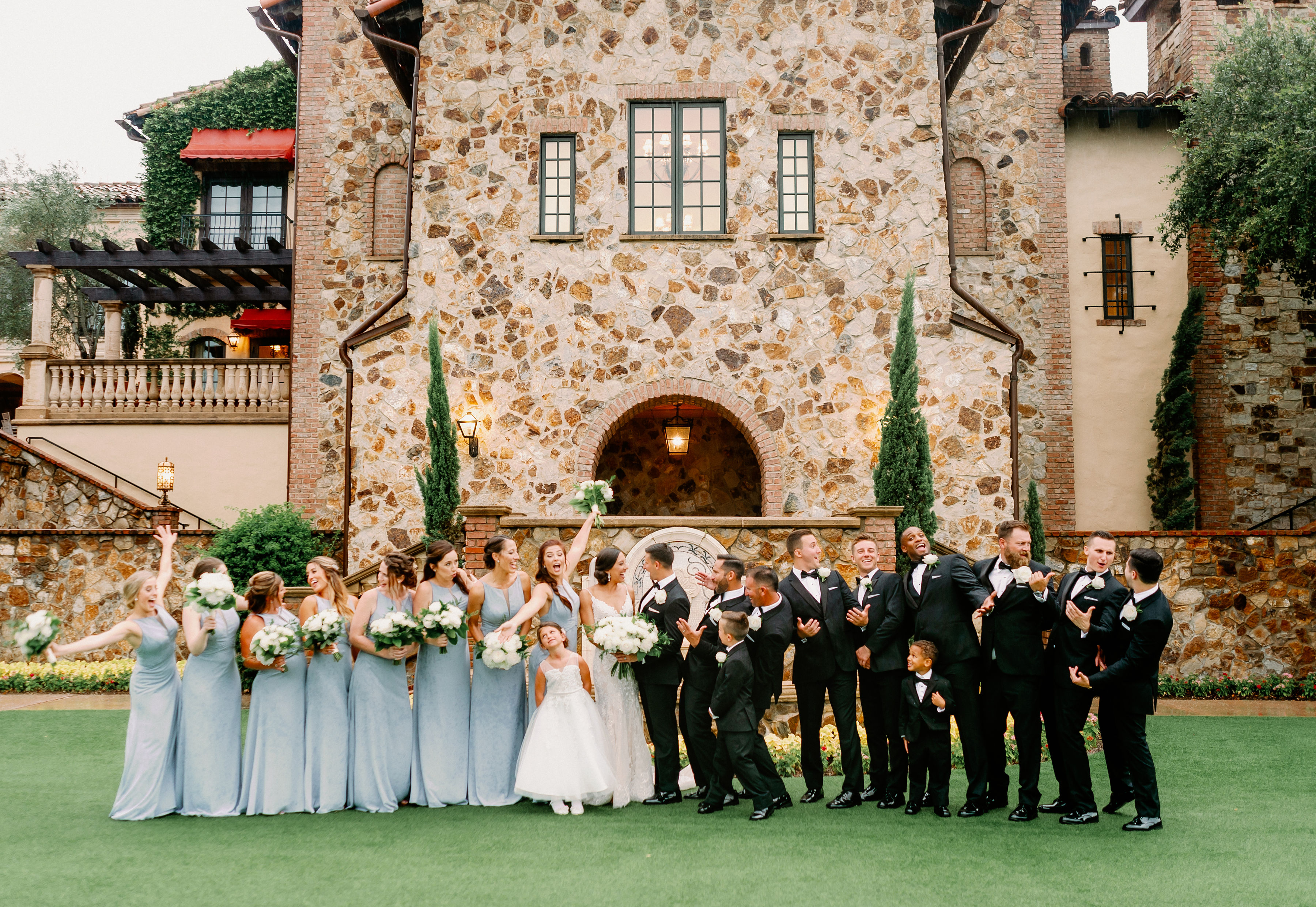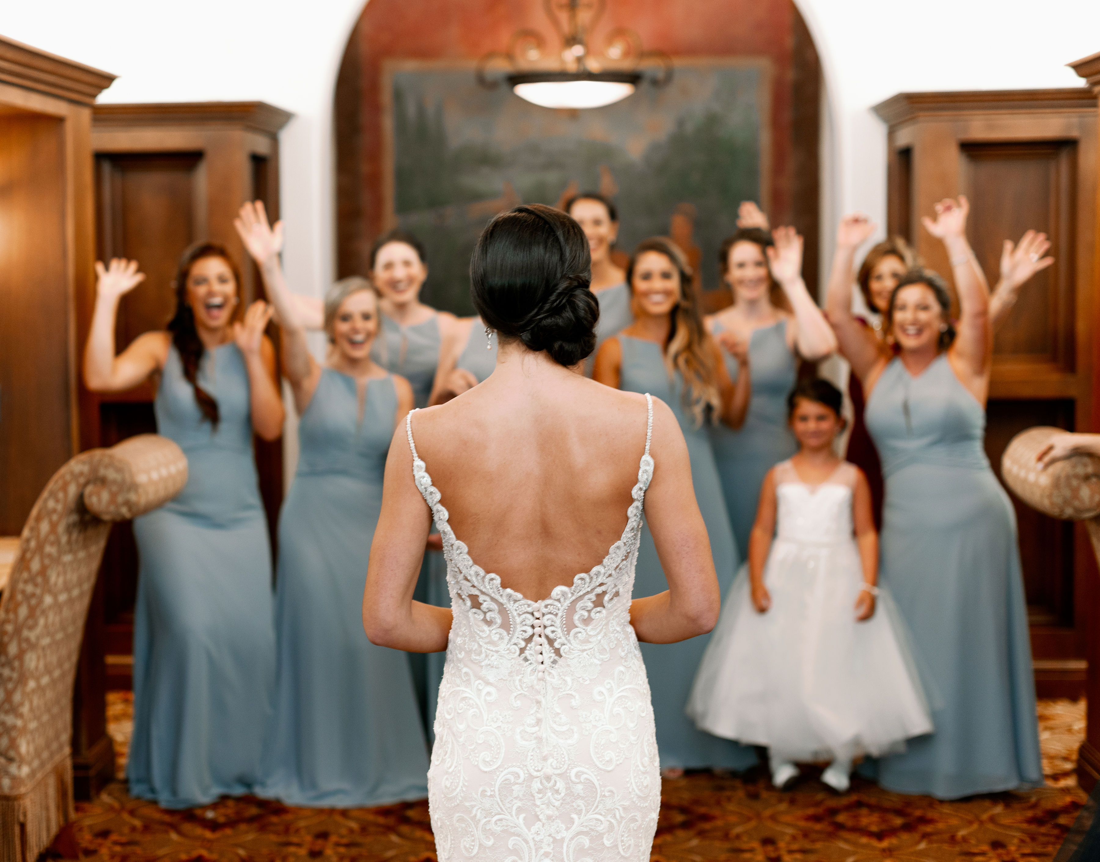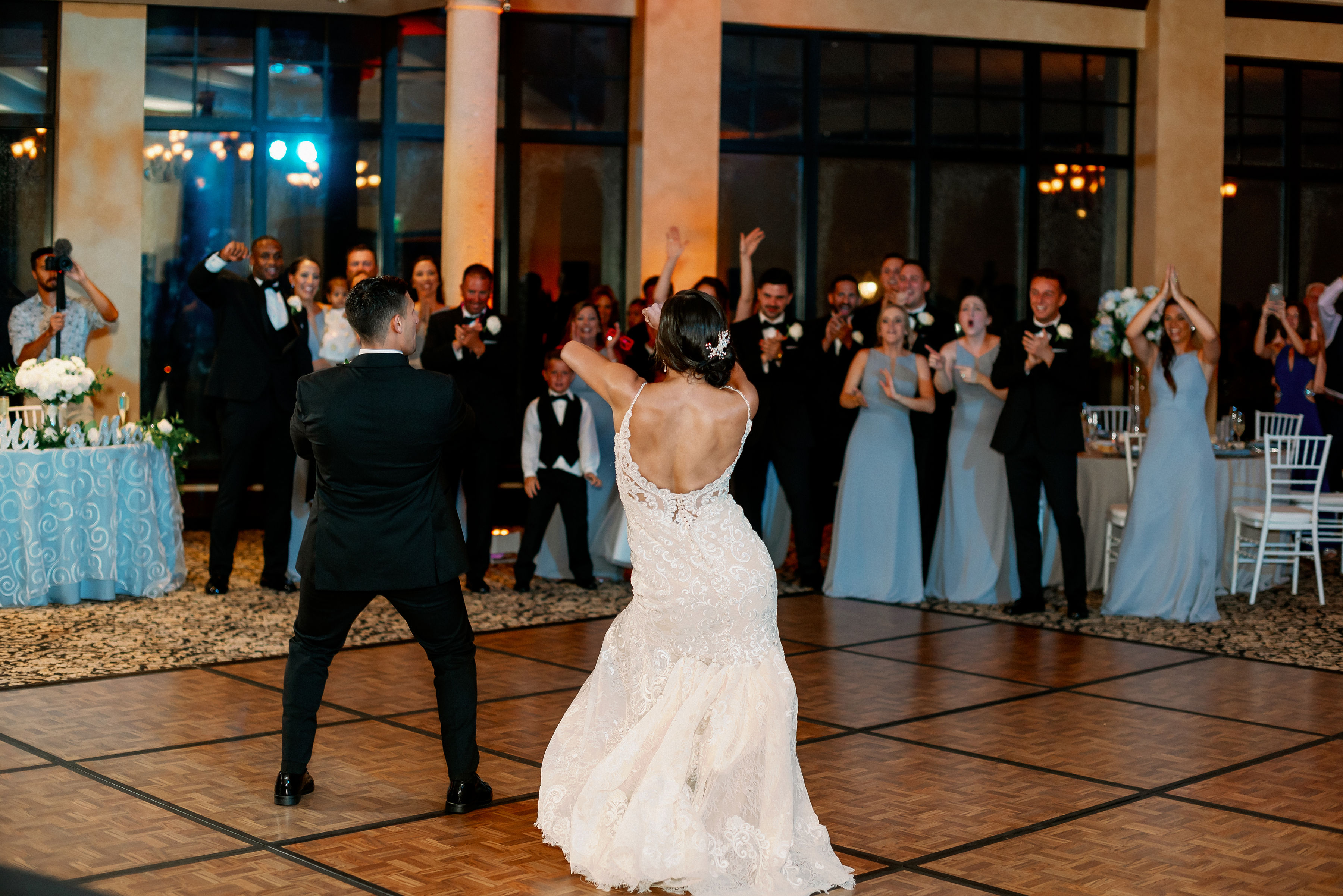 Our next wedding took place in July of 2019, at the beautiful venue Bella Collina. Taylor and Cody held a classic blue and white wedding, and, as it was Florida, there was an unexpected appearance by some drizzles. Fortunately, our happy couple took advantage of the situation for some fun and unique photos, captured by the fabulously talented Dewitt for Love Photography.