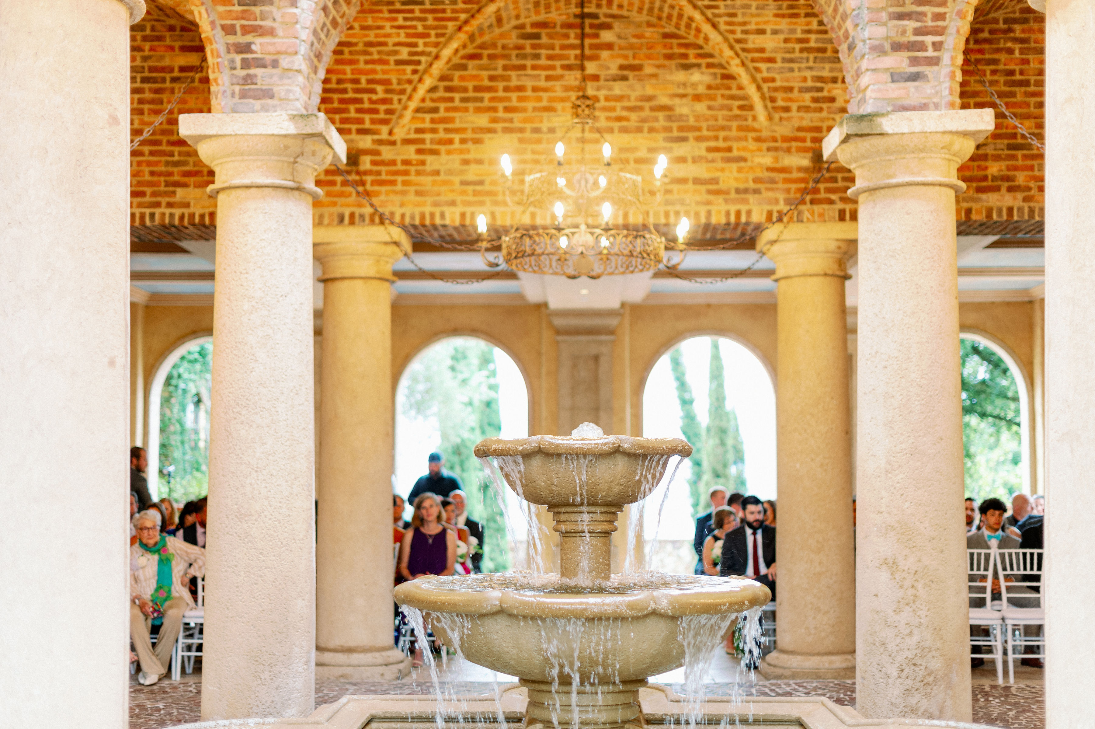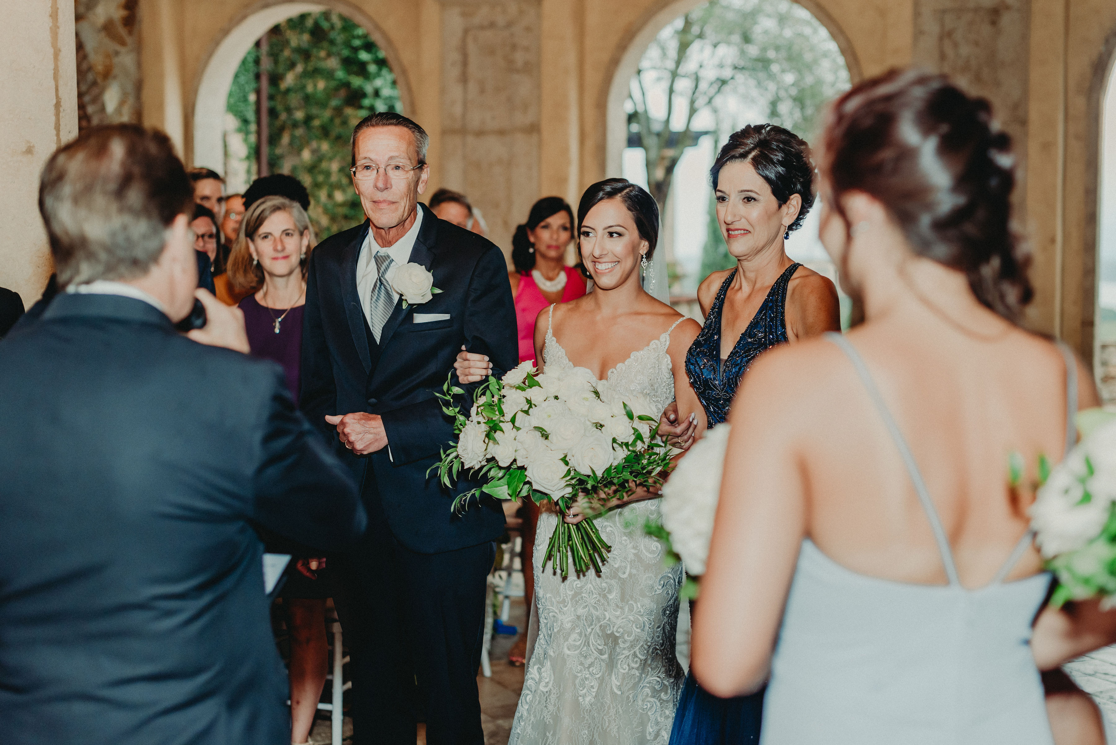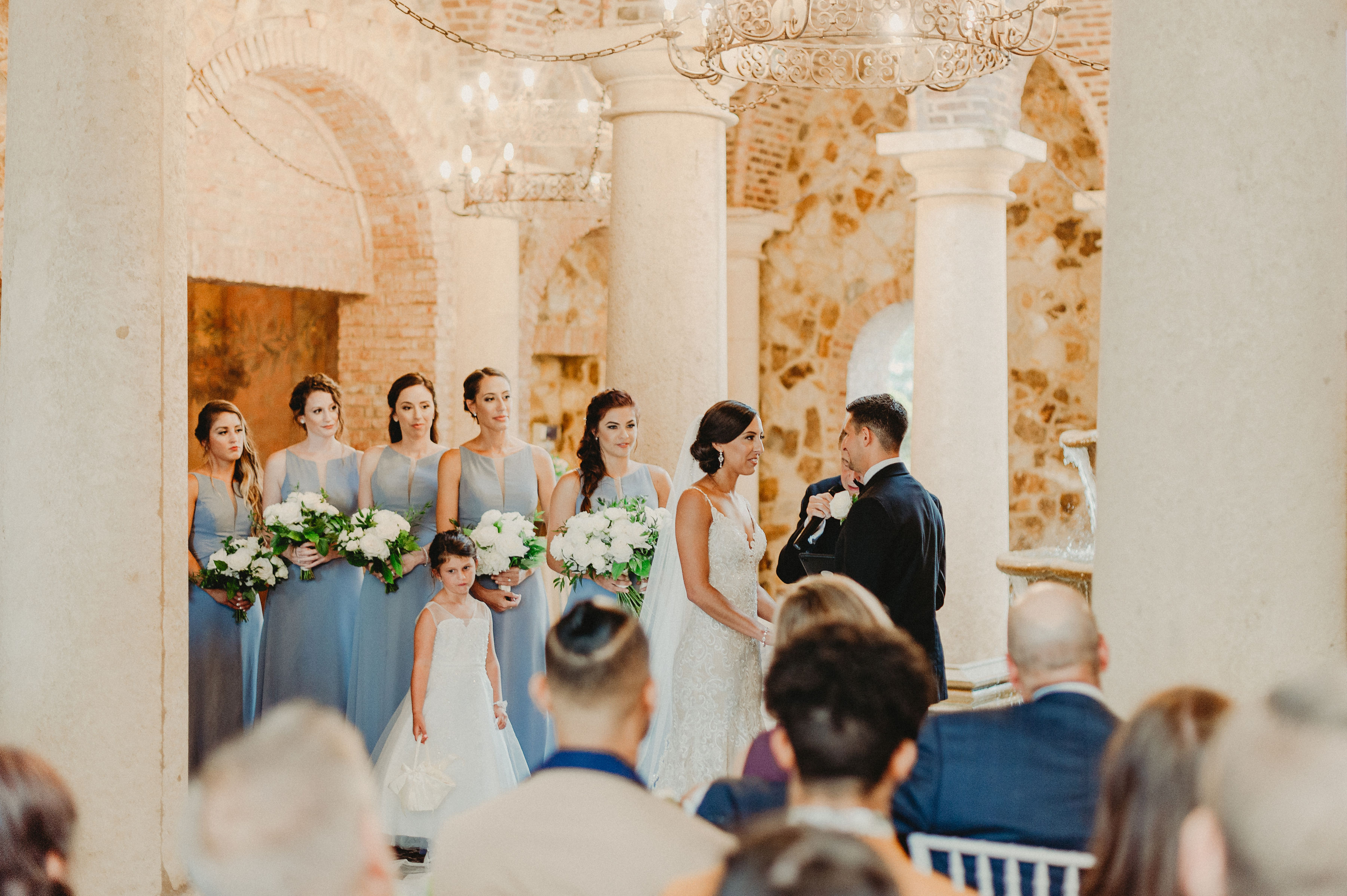 The ceremony was held on the terrace, which offered cover from the rain. We love to see couples take advantage of the backdrop of Bella’s gorgeous fountain terrace. With the underscore of the quartet, Paint it Black, Taylor and Cody made their trip down the aisle. They shared their vows, exchanged rings, and kissed as they were pronounced husband and wife. The ceremony was ended with a traditional breaking of a glass.