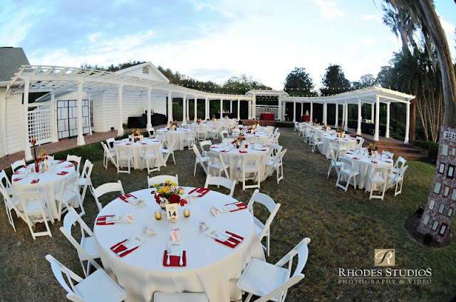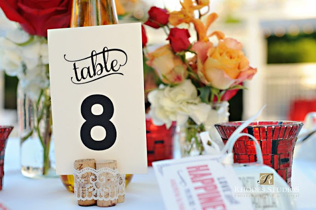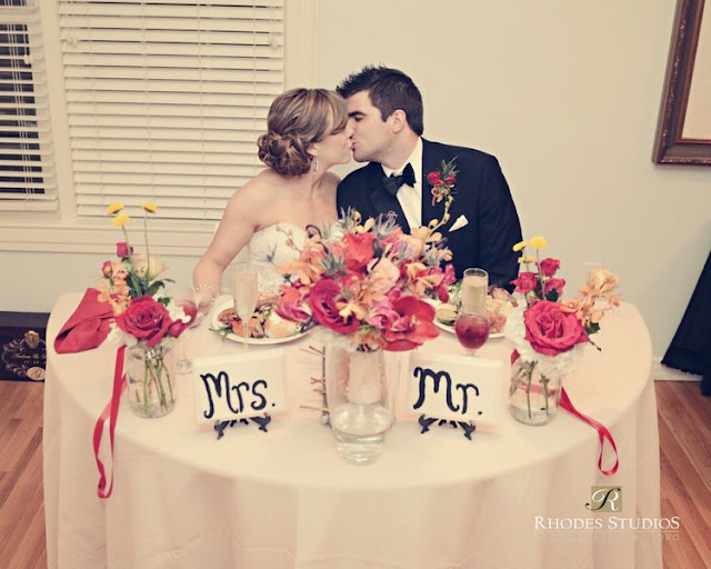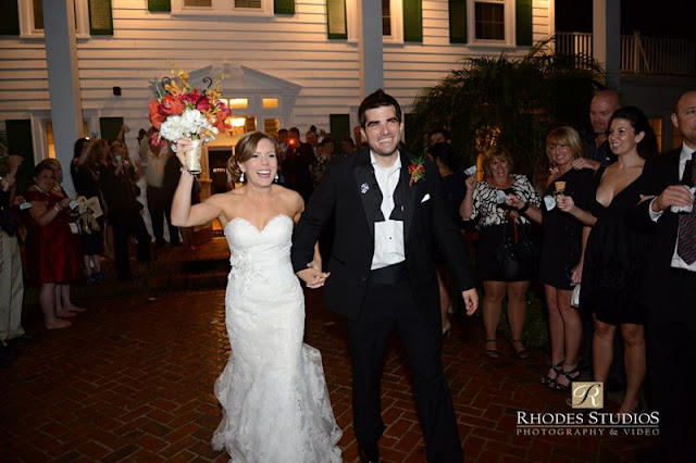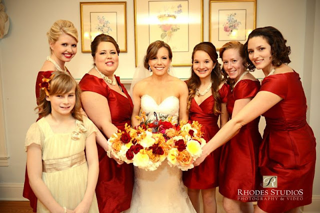 The reception was just as beautiful, with lots of personal touches thanks to Pamela’s love for all things Etsy! Lee Forrest Designs created whimsical red and yellow centerpieces in mix-n-match bottles and vases, and Rhodes Studios captured all the fun and beauty of the wedding in their photographs. Soundwave Entertainment‘s DJ helped everyone dance off the calories they ate, thanks to the awesome candy station, the wedding cake by Party Flavors Custom Cakes and Big City Catering‘s delicious food! Pamela and Andrew’s first dance was amazing, thanks to Two Left Feet dance studio. Everyone had a great time, even after the unexpected rainstorm that drove everyone inside temporarily!