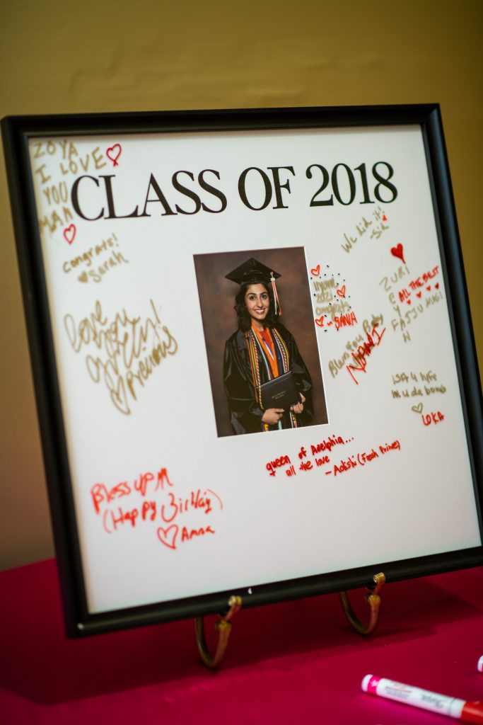 The party began with a speech from Zoya’s mother to celebrate her daughter’s graduation. Guests were then free to explore the party, enjoying pieces of the candy buffet, taking photos at the photo booth from Xclusive Photobooths, requesting their custom airbrush tees, and dancing to music provided by Xclusive Deejays.