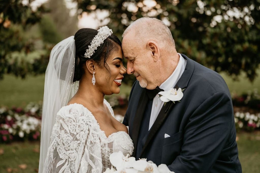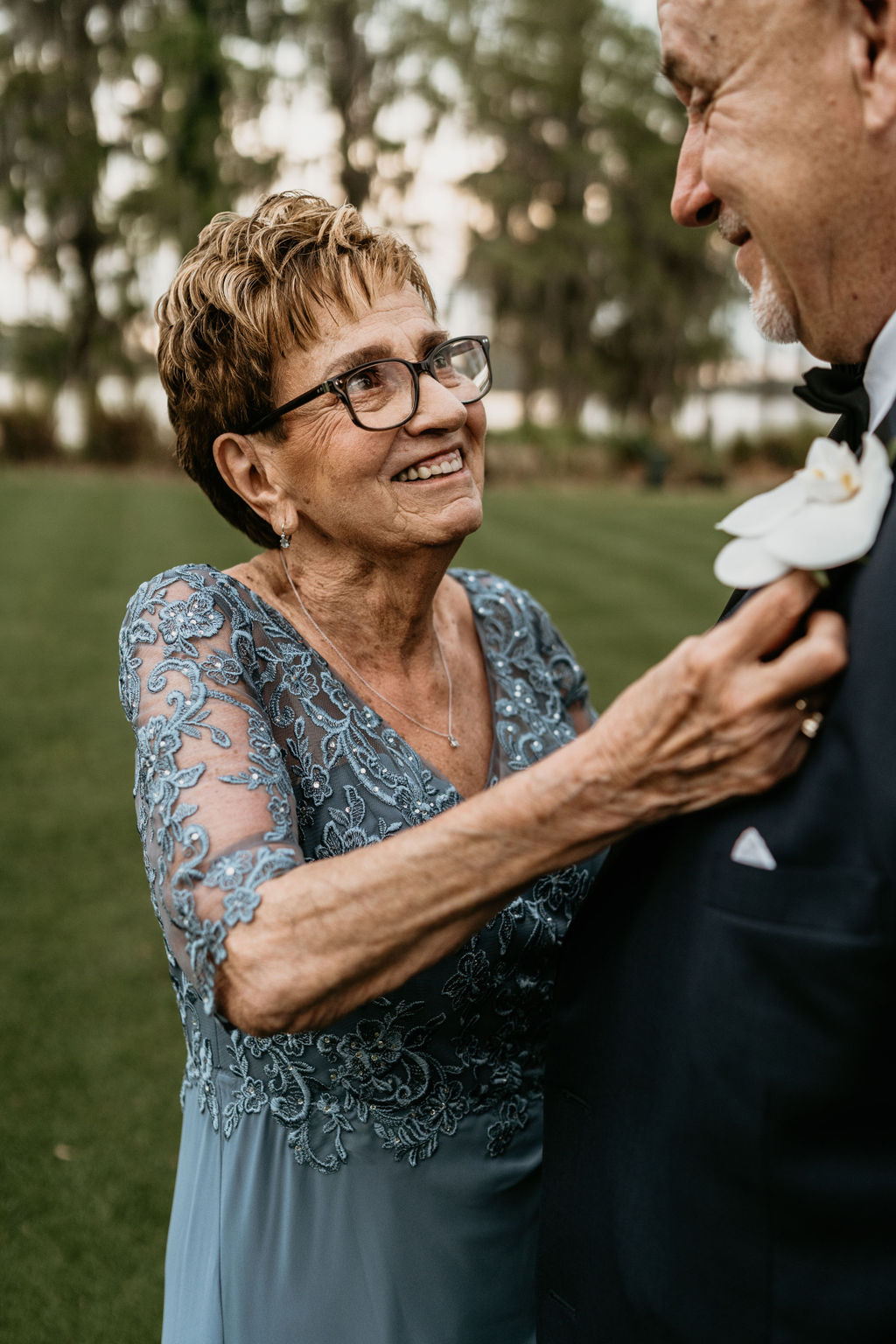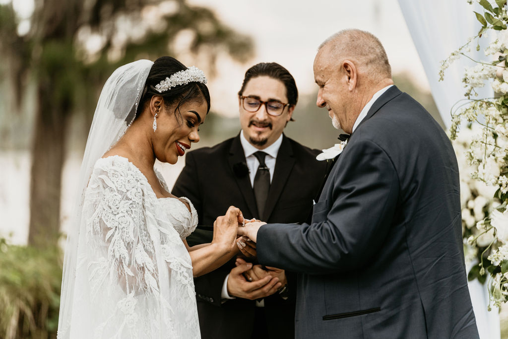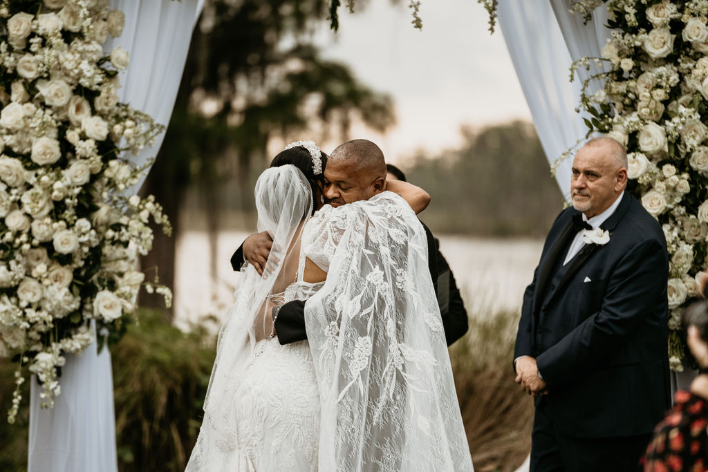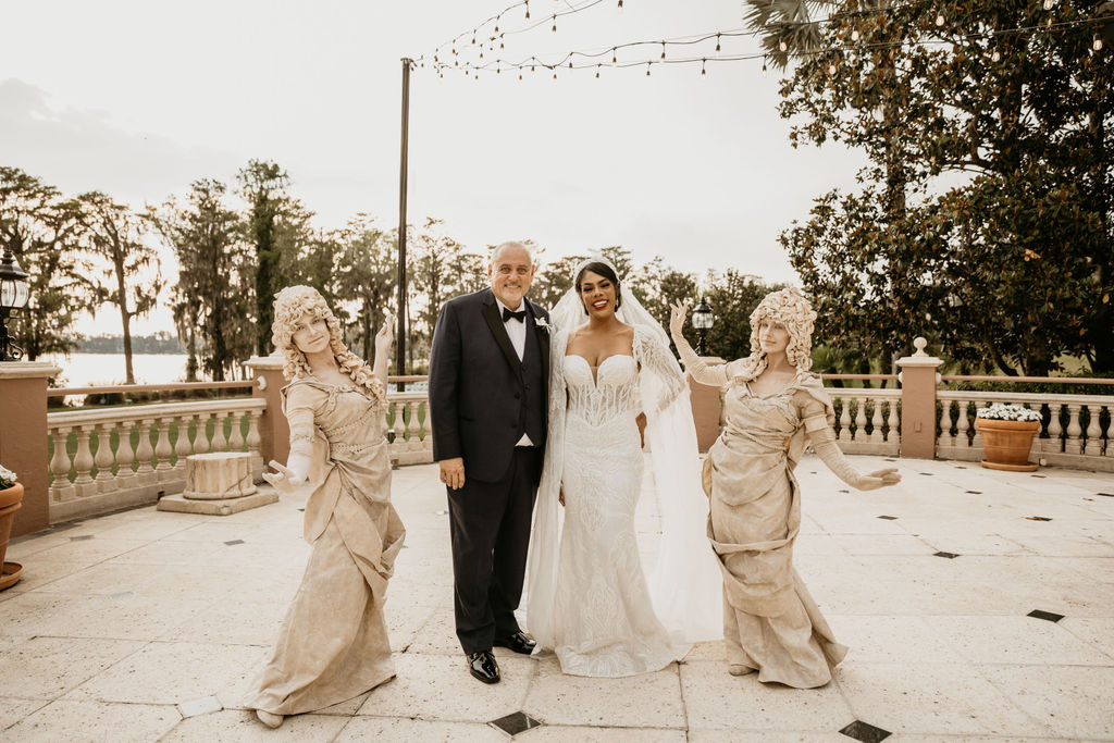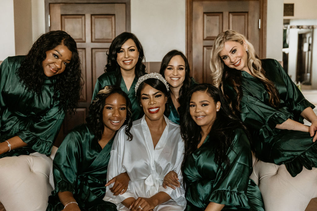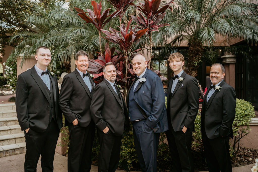 The ladies and gentlemen spent the first part of the day getting ready onsite at Isleworth Country Club with the ladies in the women’s locker room and the men in a board room on a separate floor. After everyone had perfected their wedding day looks the couple had a sweet first look with each other followed by portraits around the grounds and with their wedding parties which included some of their children!