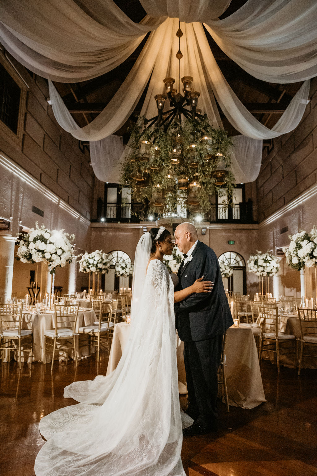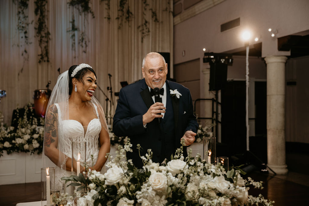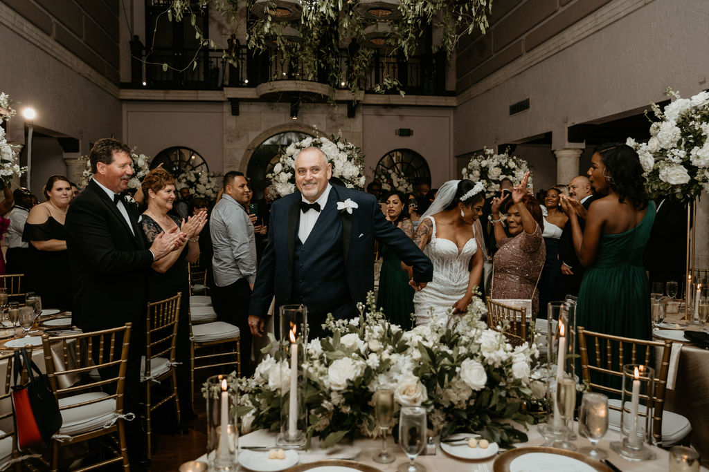 Once the newlyweds saw their vision come to life with a private room reveal we let our guests inside the magically transformed space to begin all the activities of the night. We celebrated our couple with introductions, their first dance, mother dances, toasts, special guest entertainment with Gary Lovini Violinist, dinner, and of course cake cutting before opening up the dance floor!