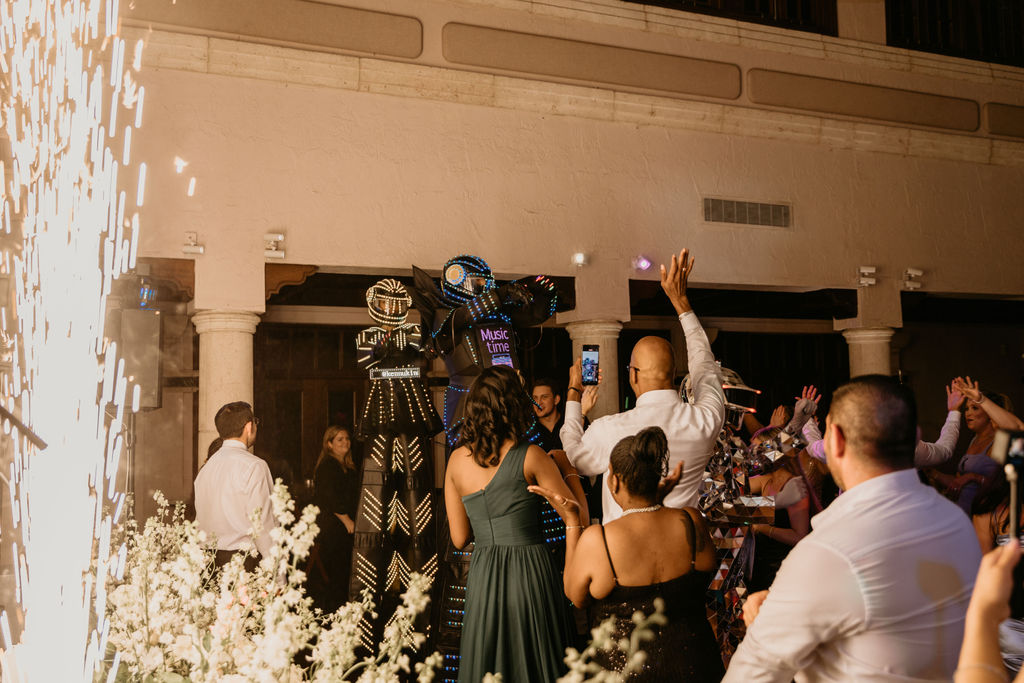 The party hadn’t truly gotten started until our hora loca began featuring special guest entertainment from Kenny Kings Music with LED stilt walkers, a dancer in a mirrored suit, and Kenny King himself on the drum!