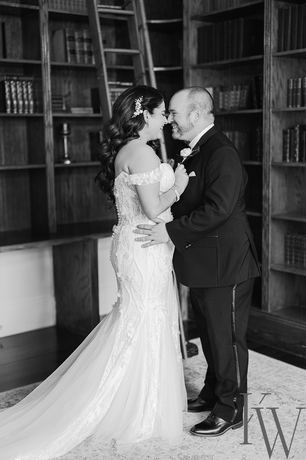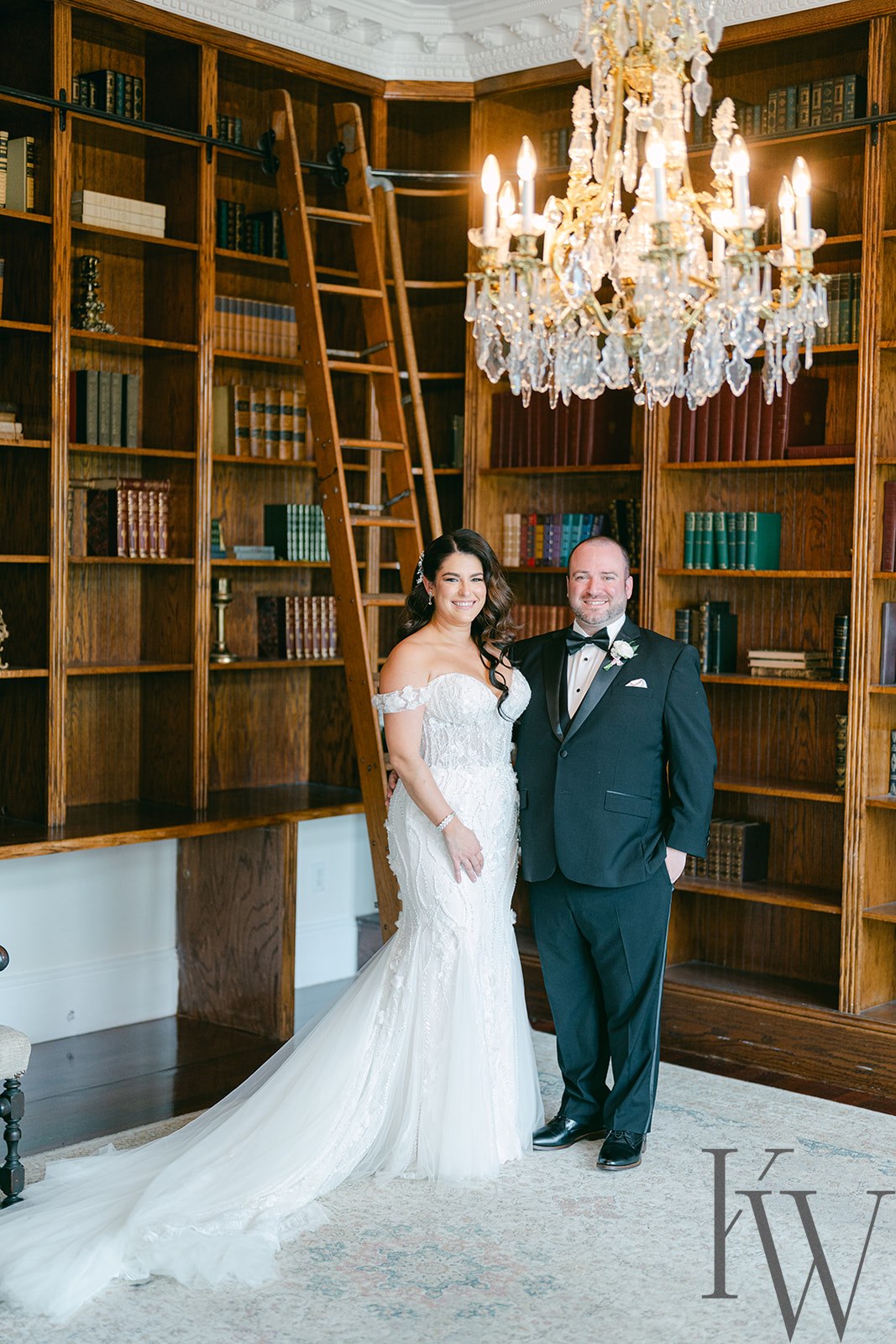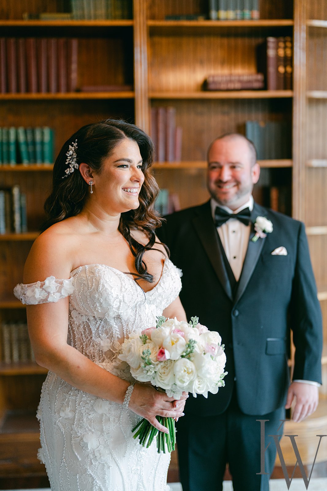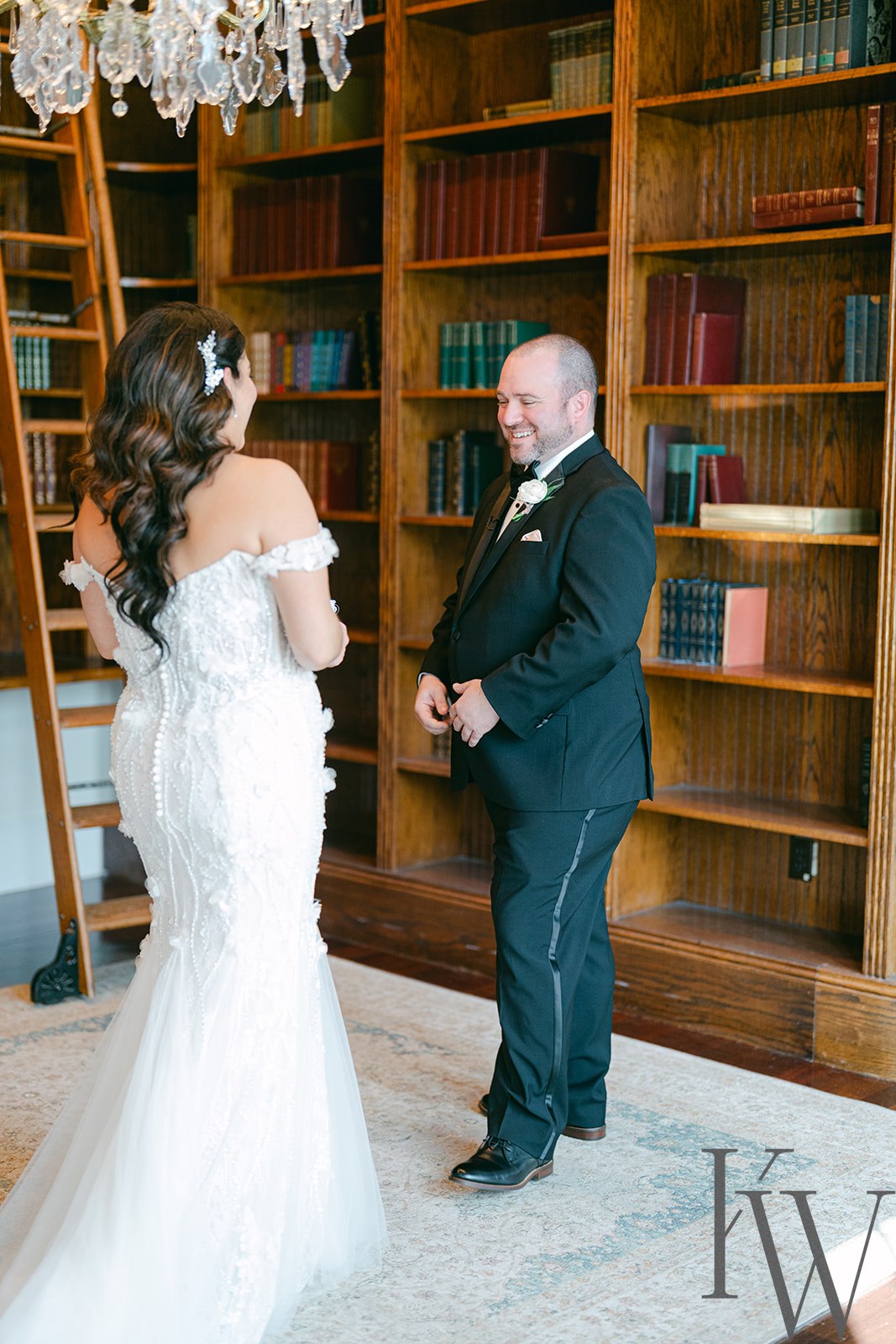 They spent their morning and early afternoon getting ready throughout the gorgeous estate house with their closest loved ones and then chose to meet in the library for a special first look before they shared another look down the aisle together in front of all of their guests!