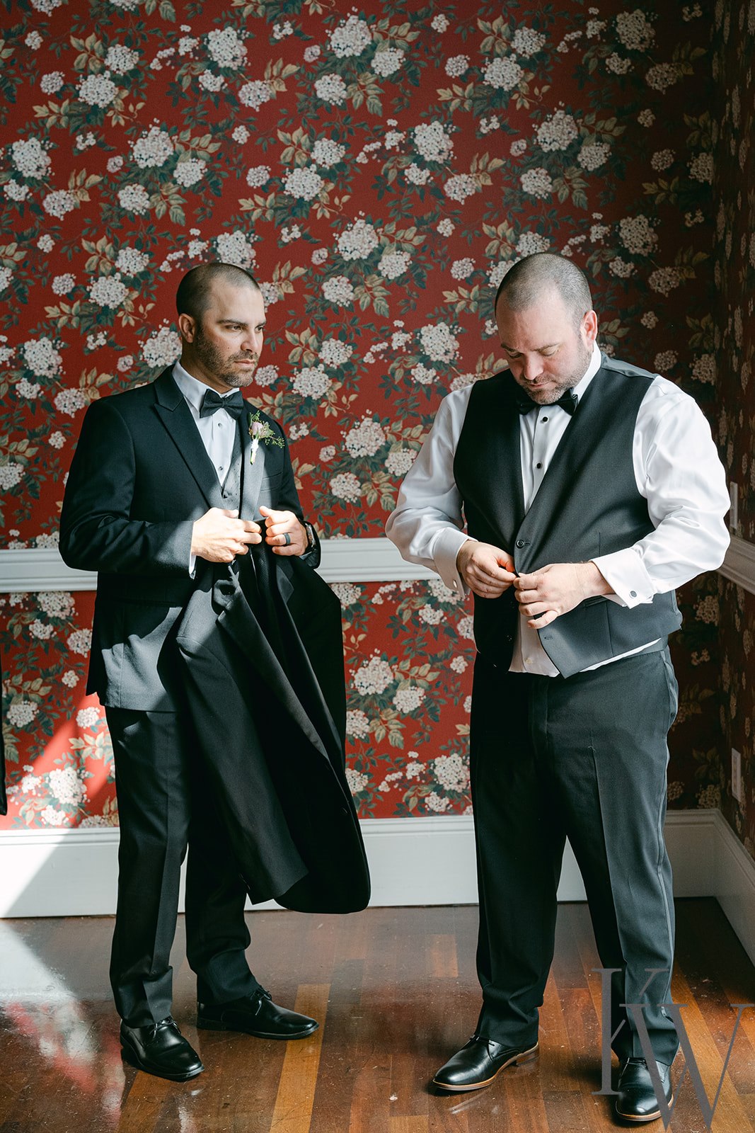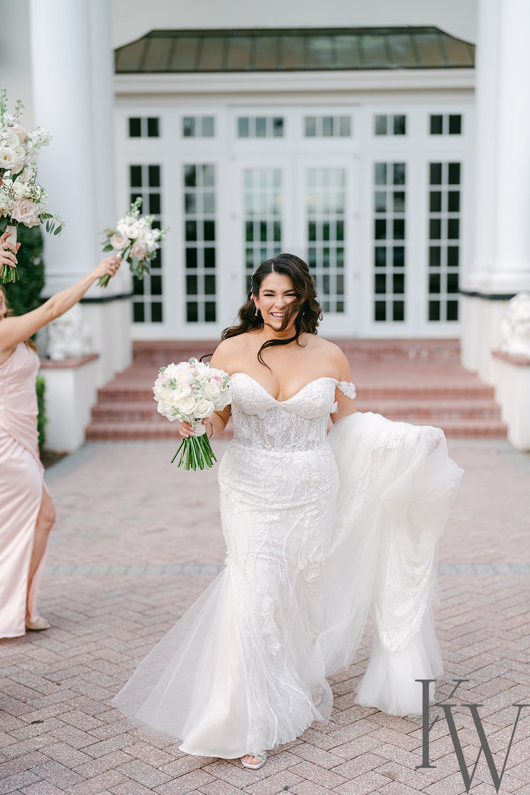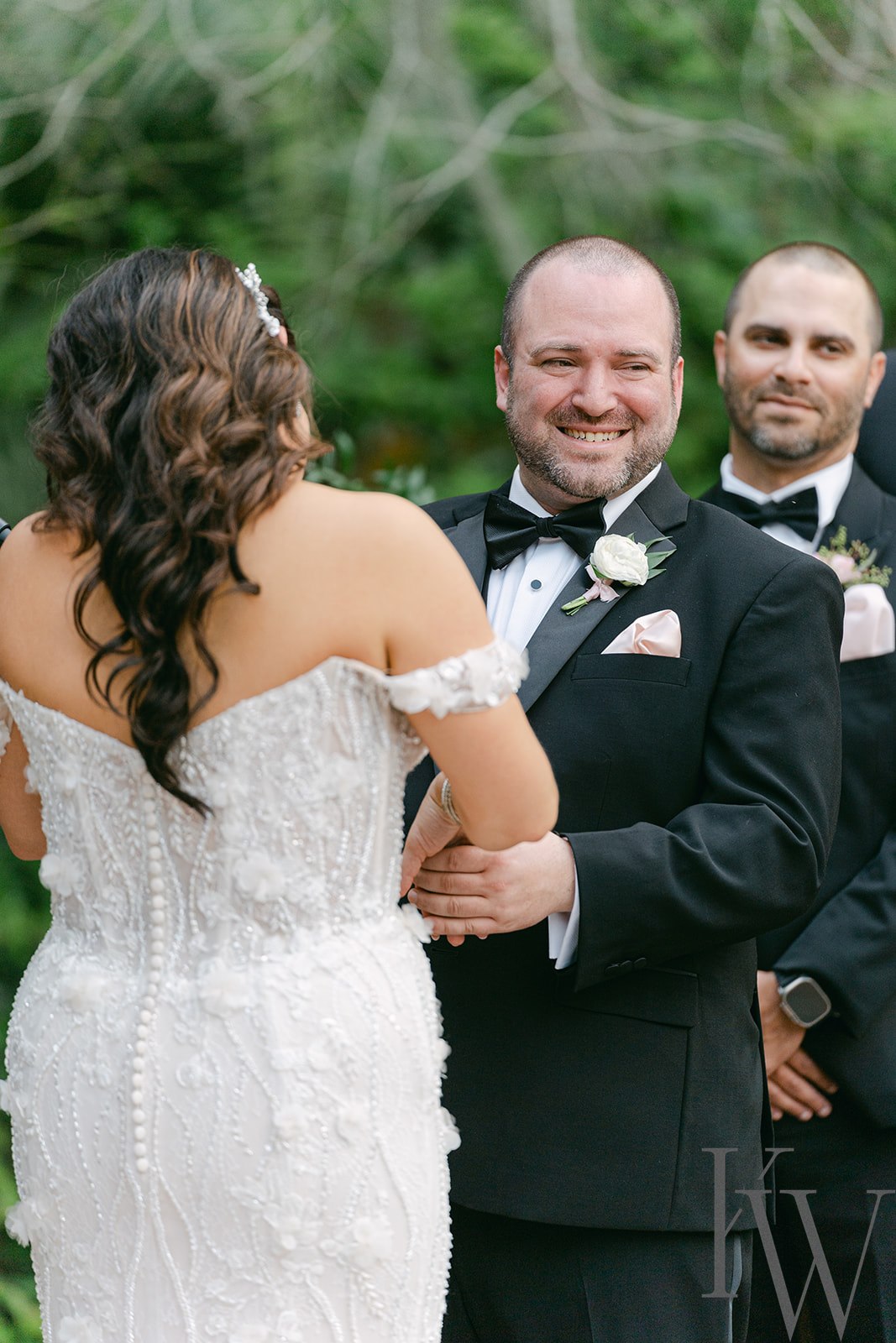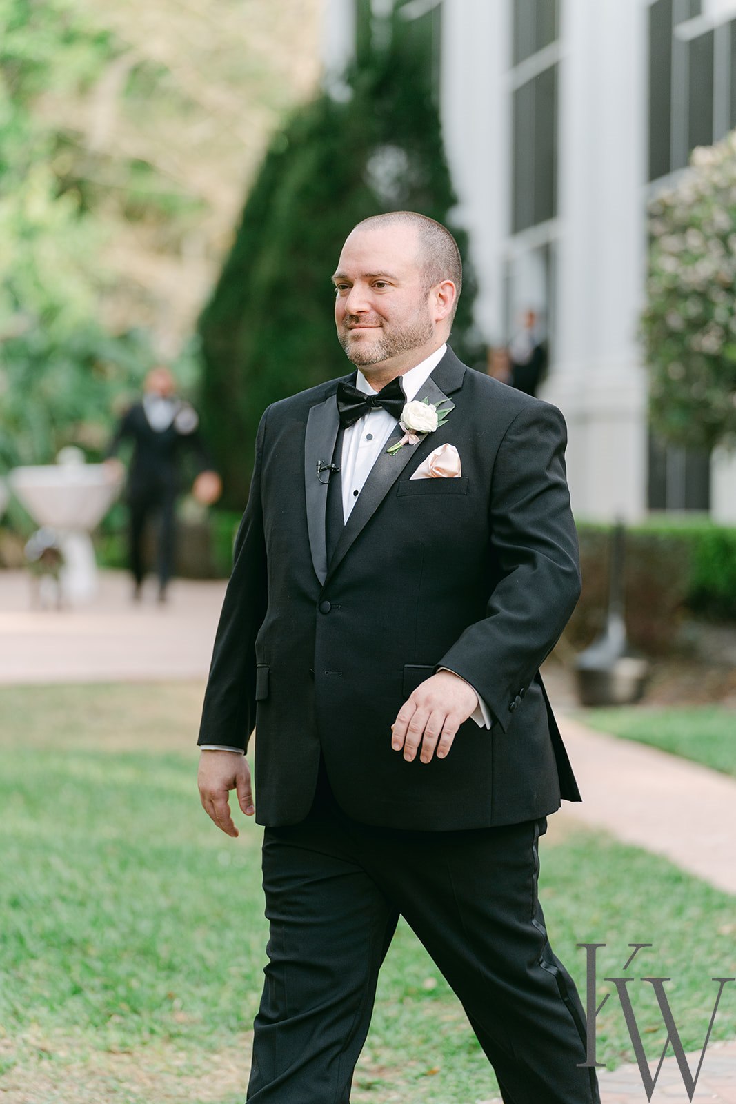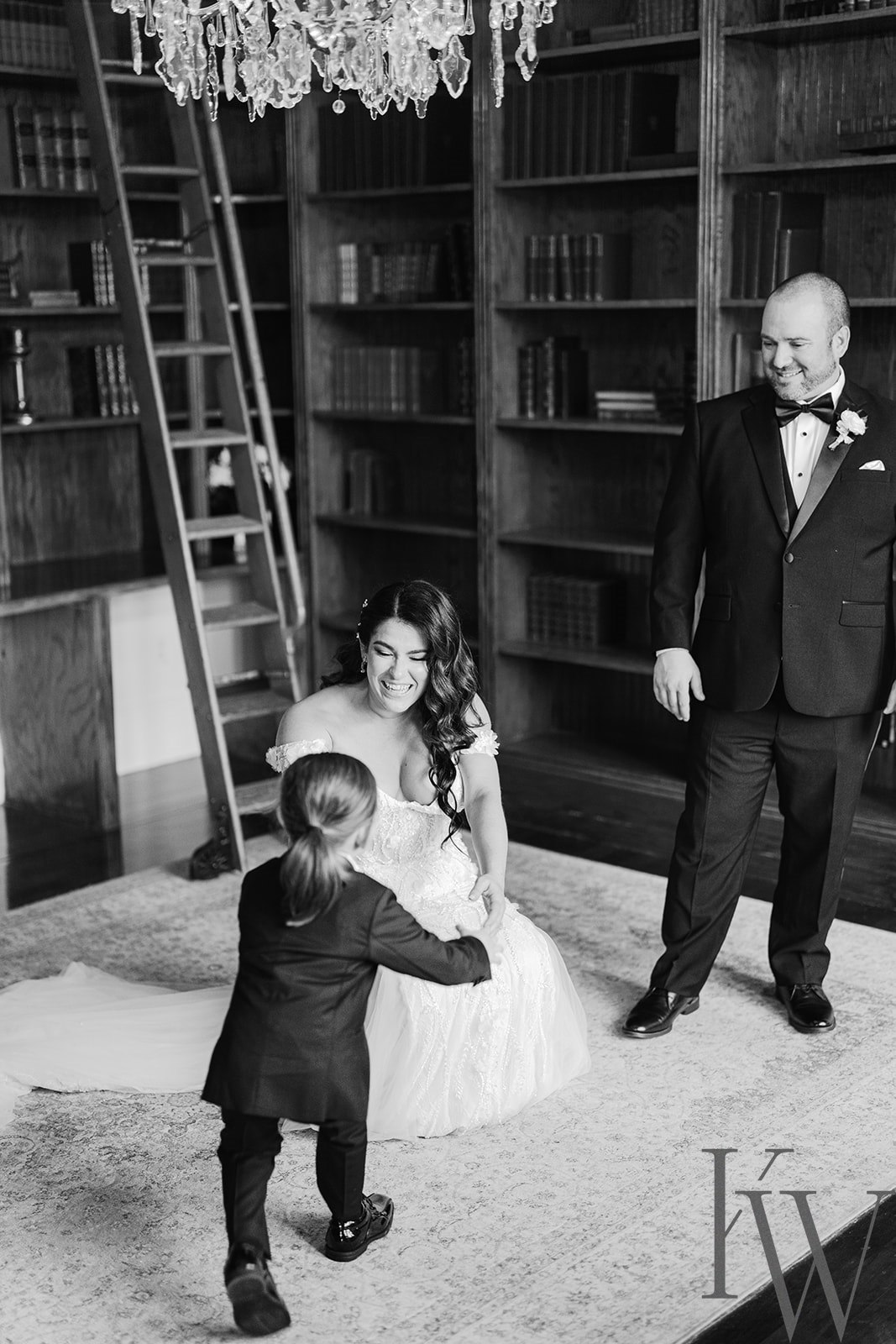 They spent their morning and early afternoon getting ready throughout the gorgeous estate house with their closest loved ones and then chose to meet in the library for a special first look before they shared another look down the aisle together in front of all of their guests!