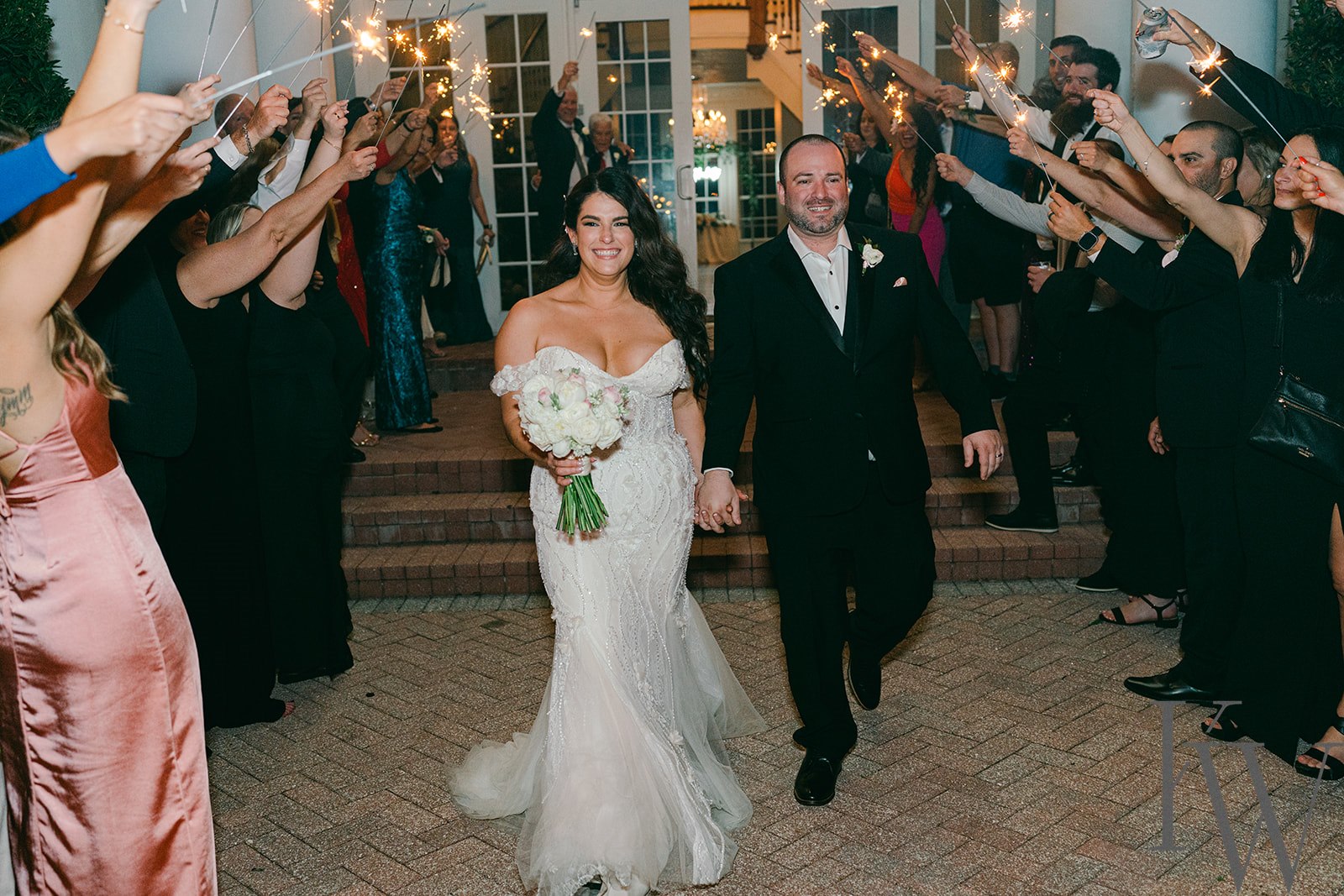Their blush blooms wedding night ended with a sparkler exit from the front of the estate house.