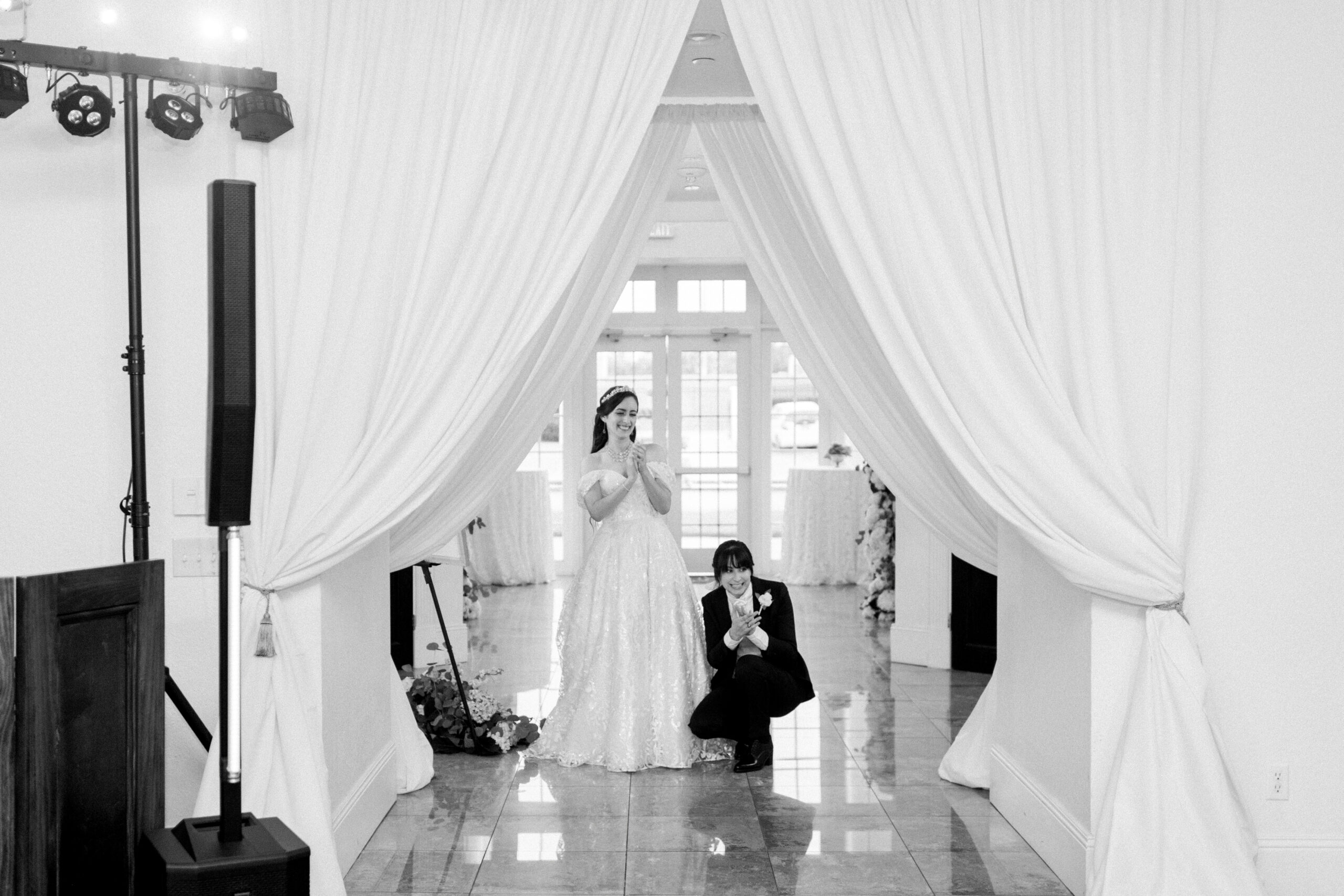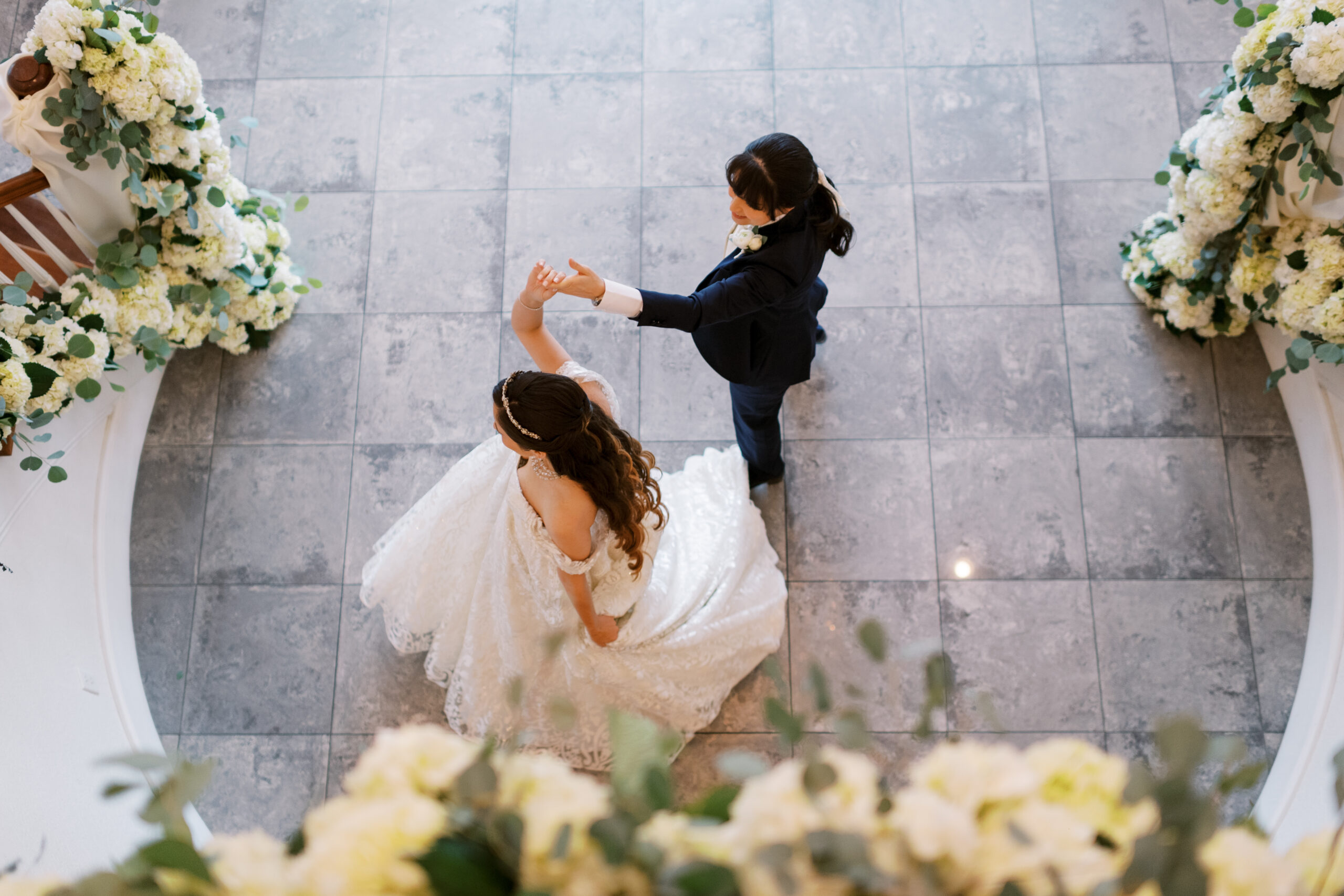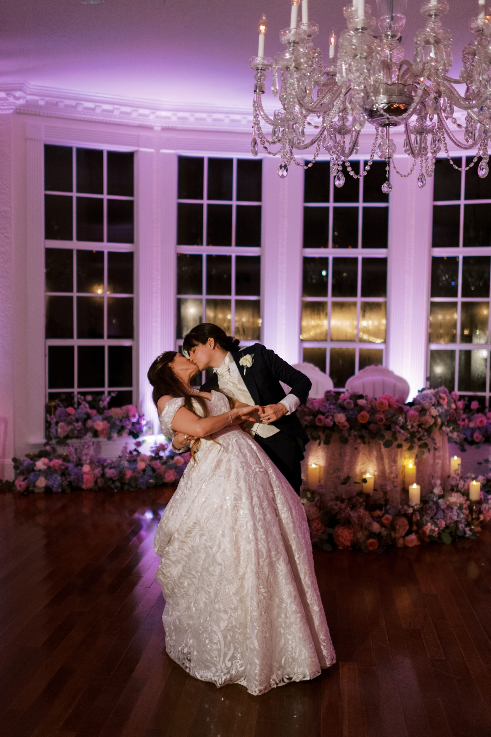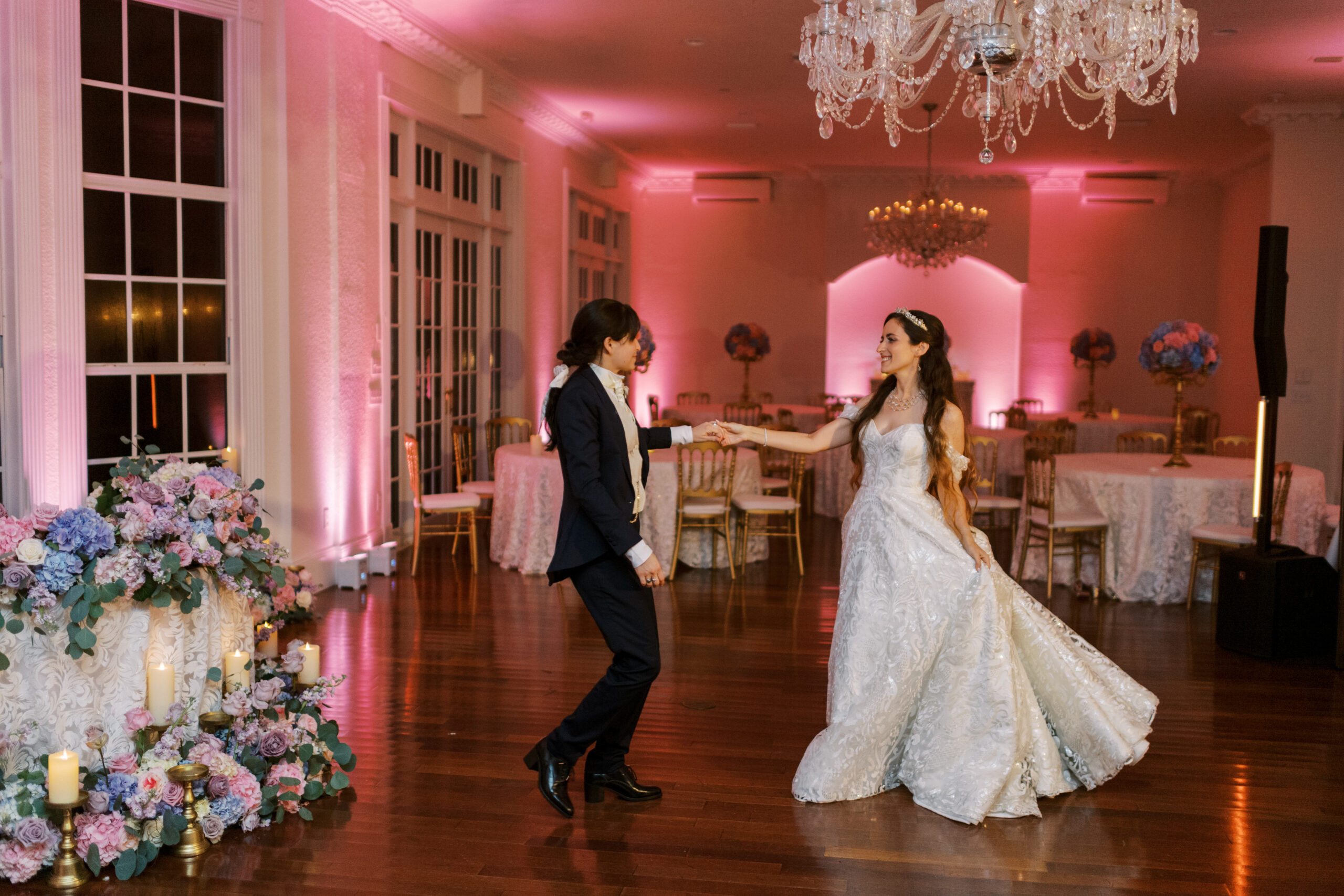 The couple couldn’t wait to see their fairytale wedding reception brought to life and saw everything together with a room reveal before any of their guests entered the space. Afterwards, we invited our guests inside the ballroom to be seated and begin the reception with all of our formalities including the couple’s special choreographed first dance made for royalty!