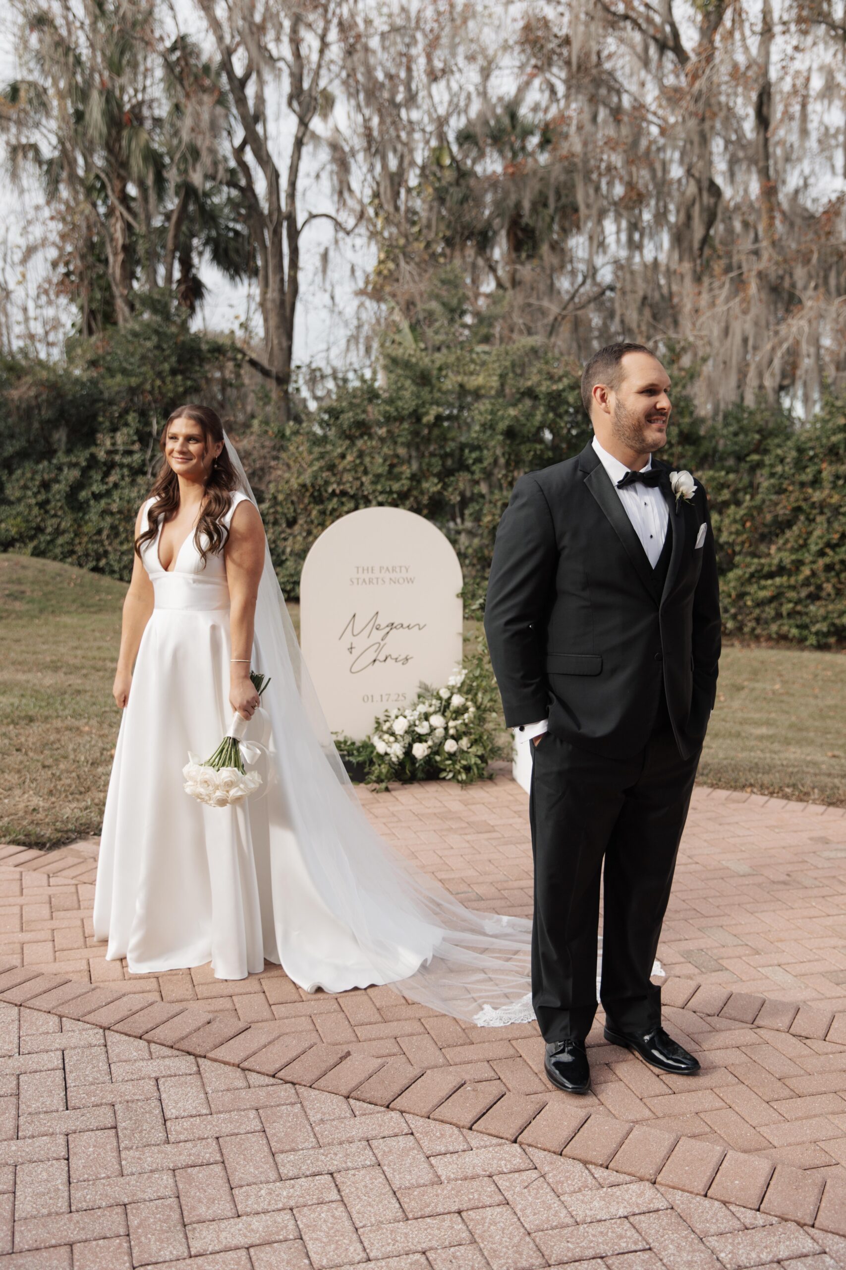 Our Anna Christine Events team’s next feature was January of 2025, with Megan & Chris’ classic Orlando wedding at the beautiful venue, Luxmore Grande Estate. The couple’s day was filled with modern black and white and captured by the incredible Febus Films.
