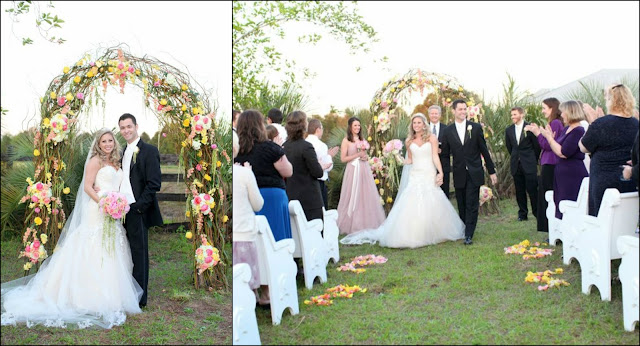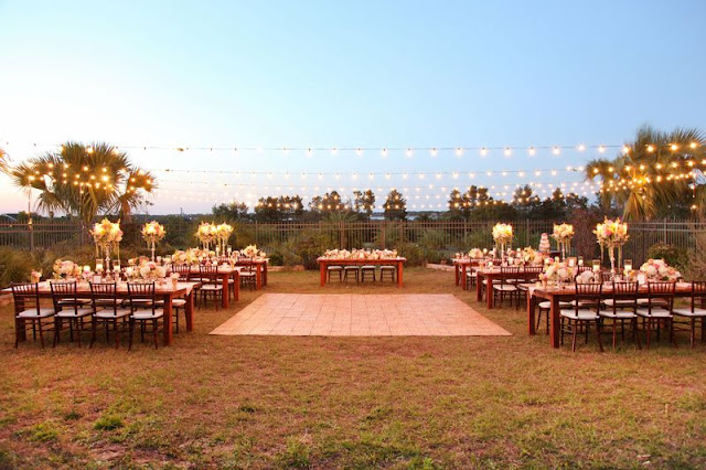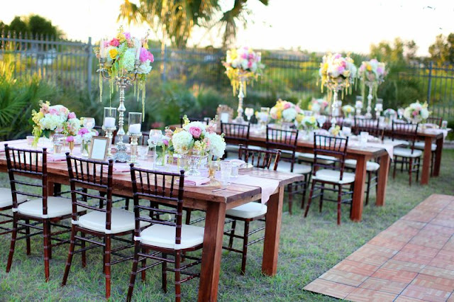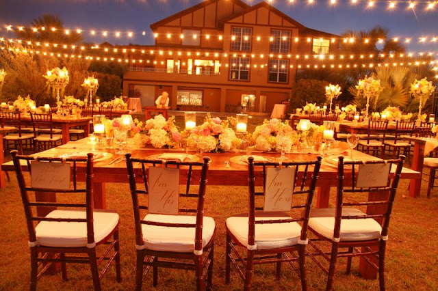 Flowers By Lesley did a remarkable job with all the centerpieces. The vintage candelabras filled with a variety of florals and candle accents really took our breath away. A Chair Affair‘s farm tables paired with their signature chiavari chairs provided a unique foundation and seating option to the outdoor setting. Weddings By 2 + Hue‘s gold ornate picture frames acted as a perfect accent to Dogwood Blossom Stationary‘s gold with rose accents menus and invites.