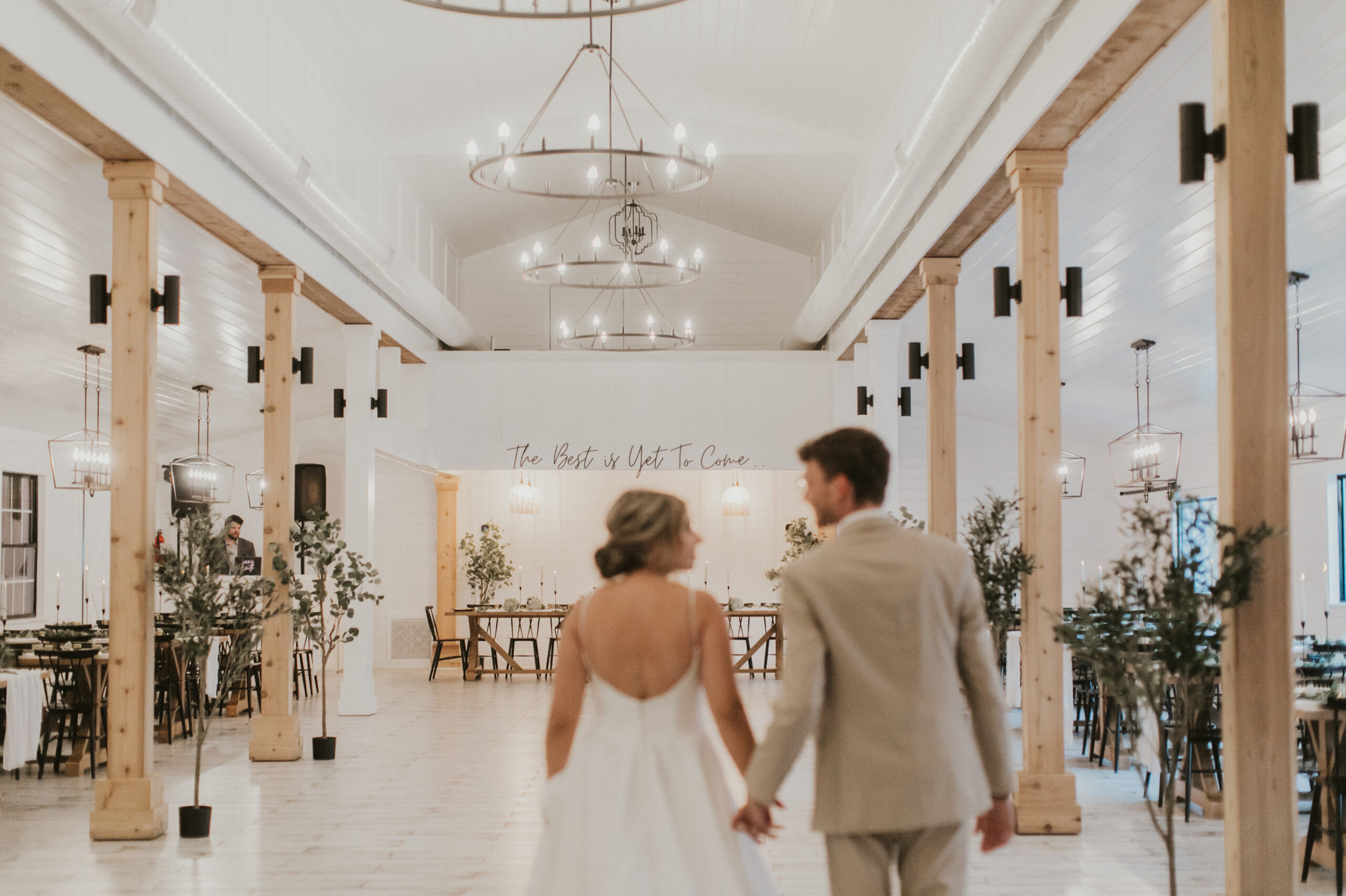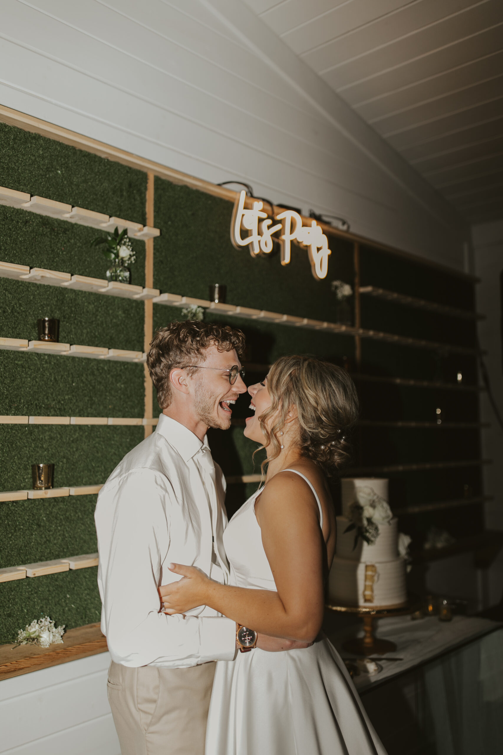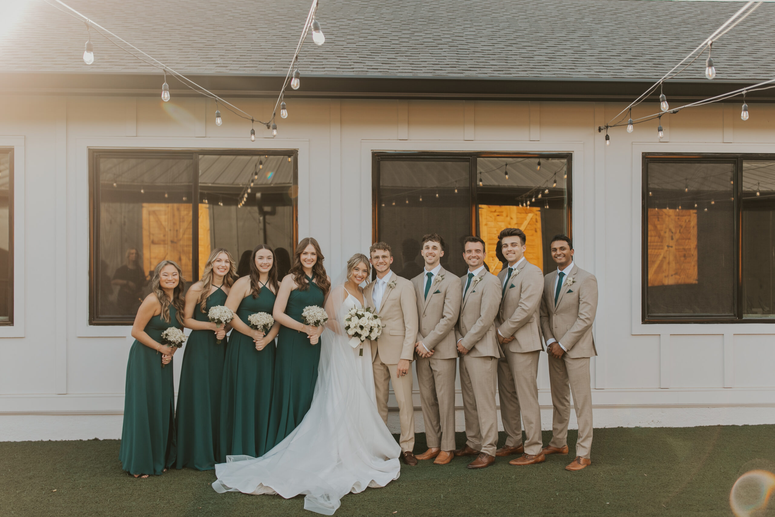 After exploring the property with their photographer to capture some stunning portraits with the golden hour sunlight they headed to the barn to sneak a peek of their romantic emerald green wedding reception space before inviting all of the guests inside from the patio cocktail hour.