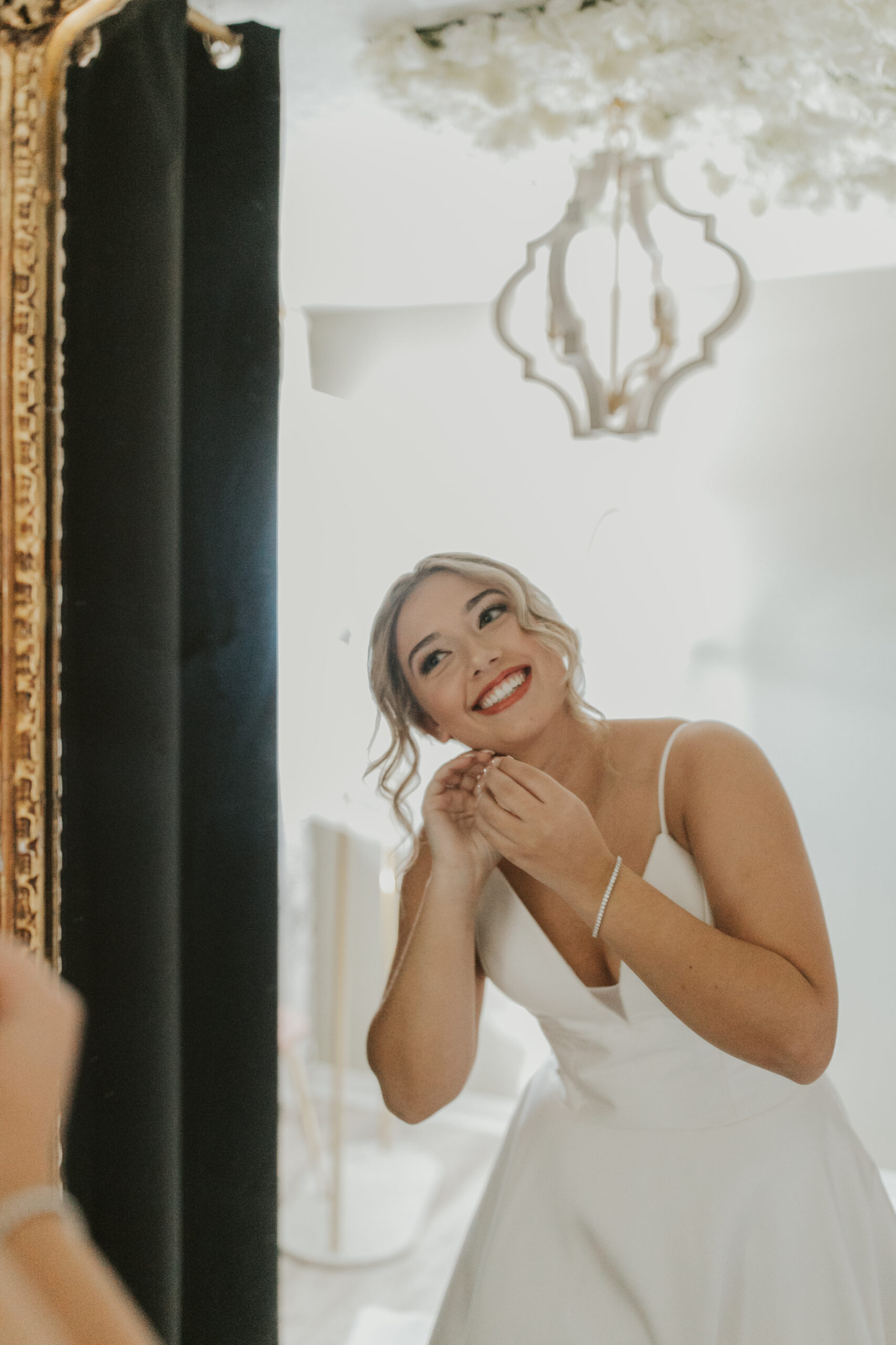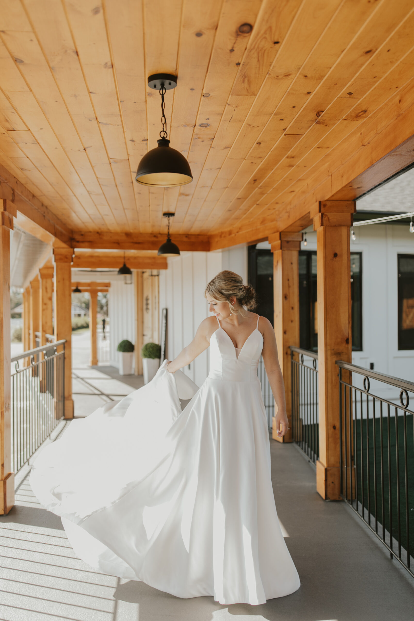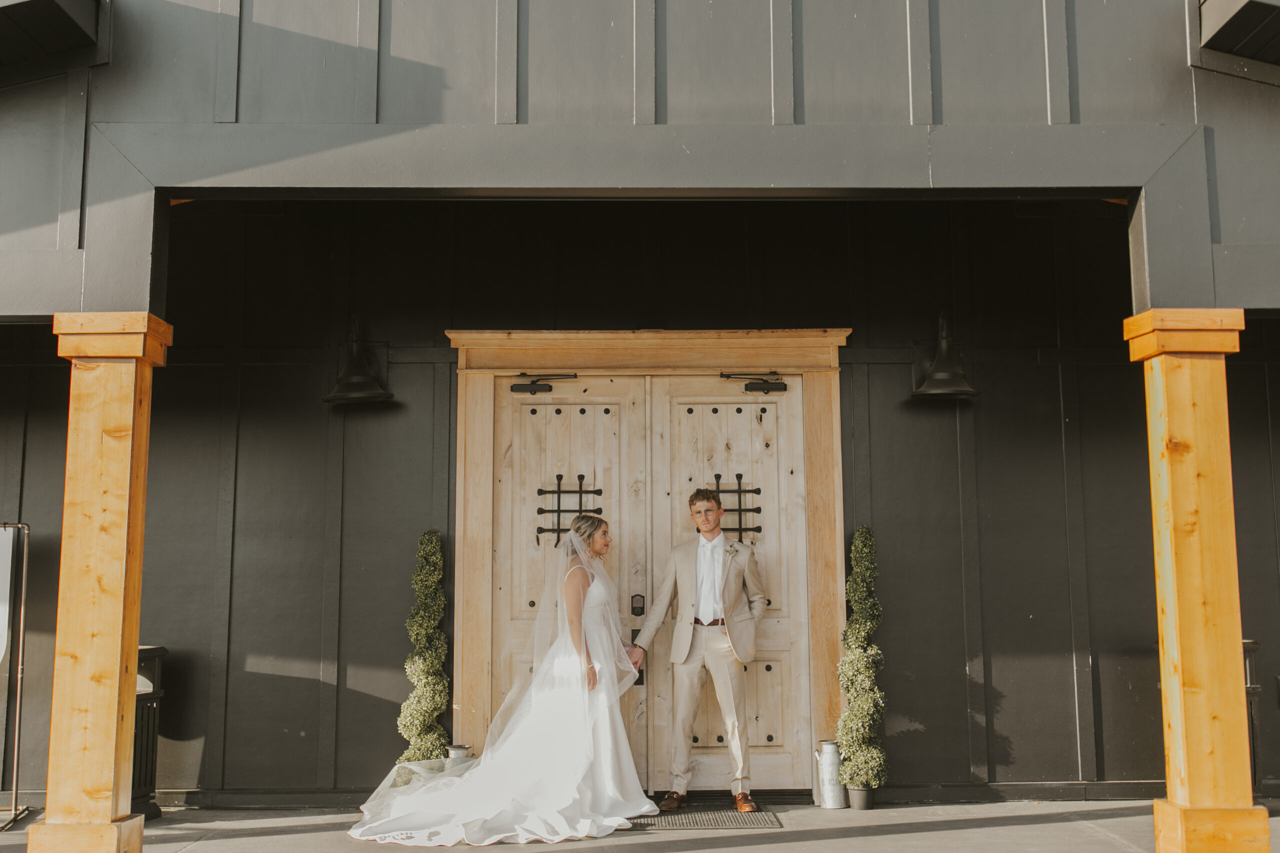 After exploring the property with their photographer to capture some stunning portraits with the golden hour sunlight they headed to the barn to sneak a peek of their romantic emerald green wedding reception space before inviting all of the guests inside from the patio cocktail hour.