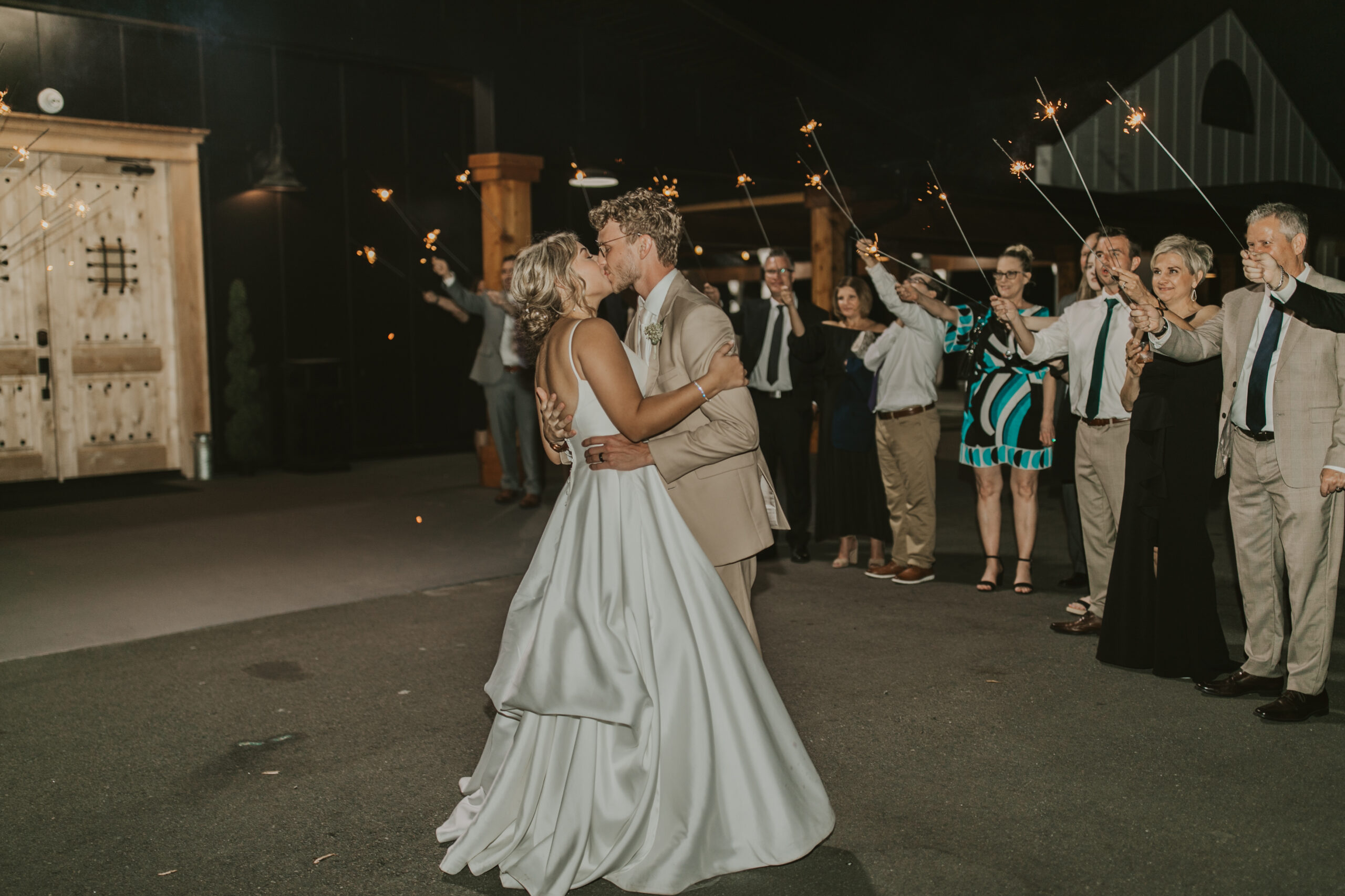 Their romantic emerald green wedding night ended with a sparkler exit to their getaway car.
