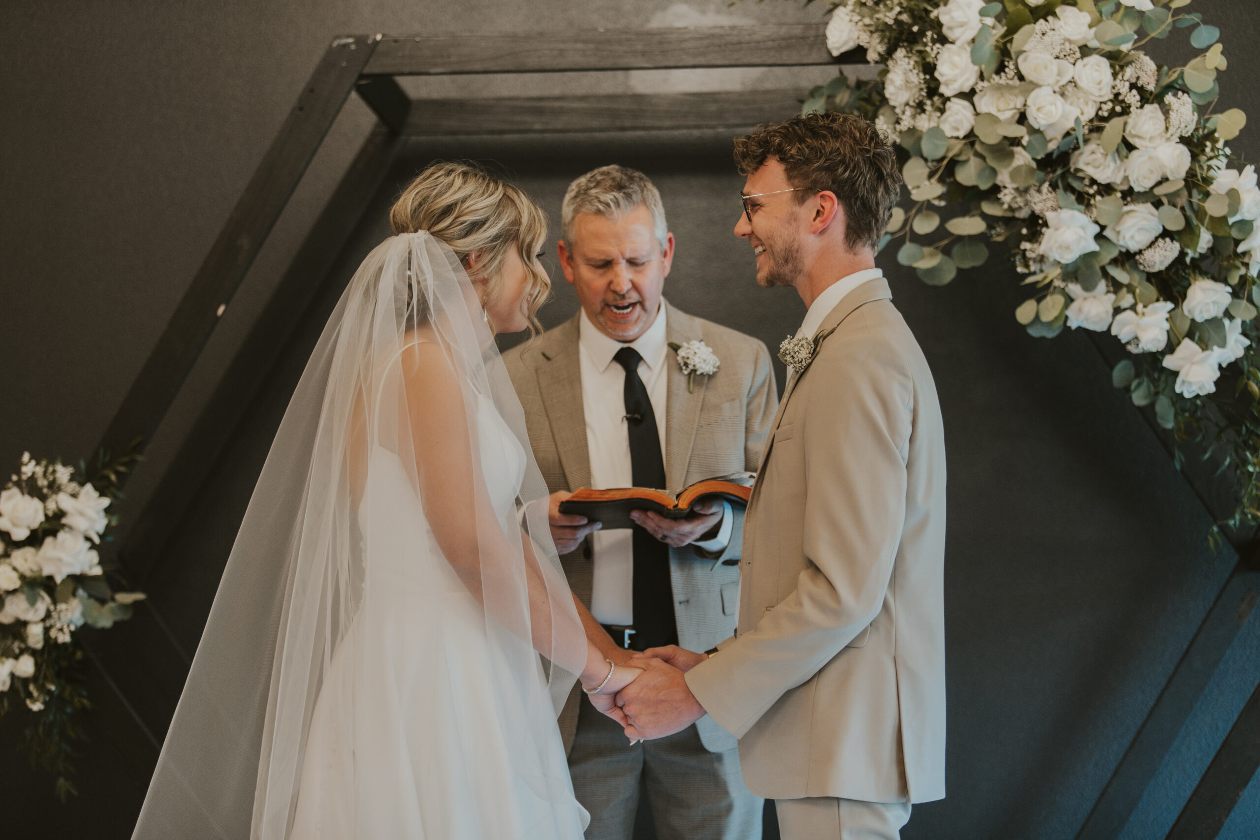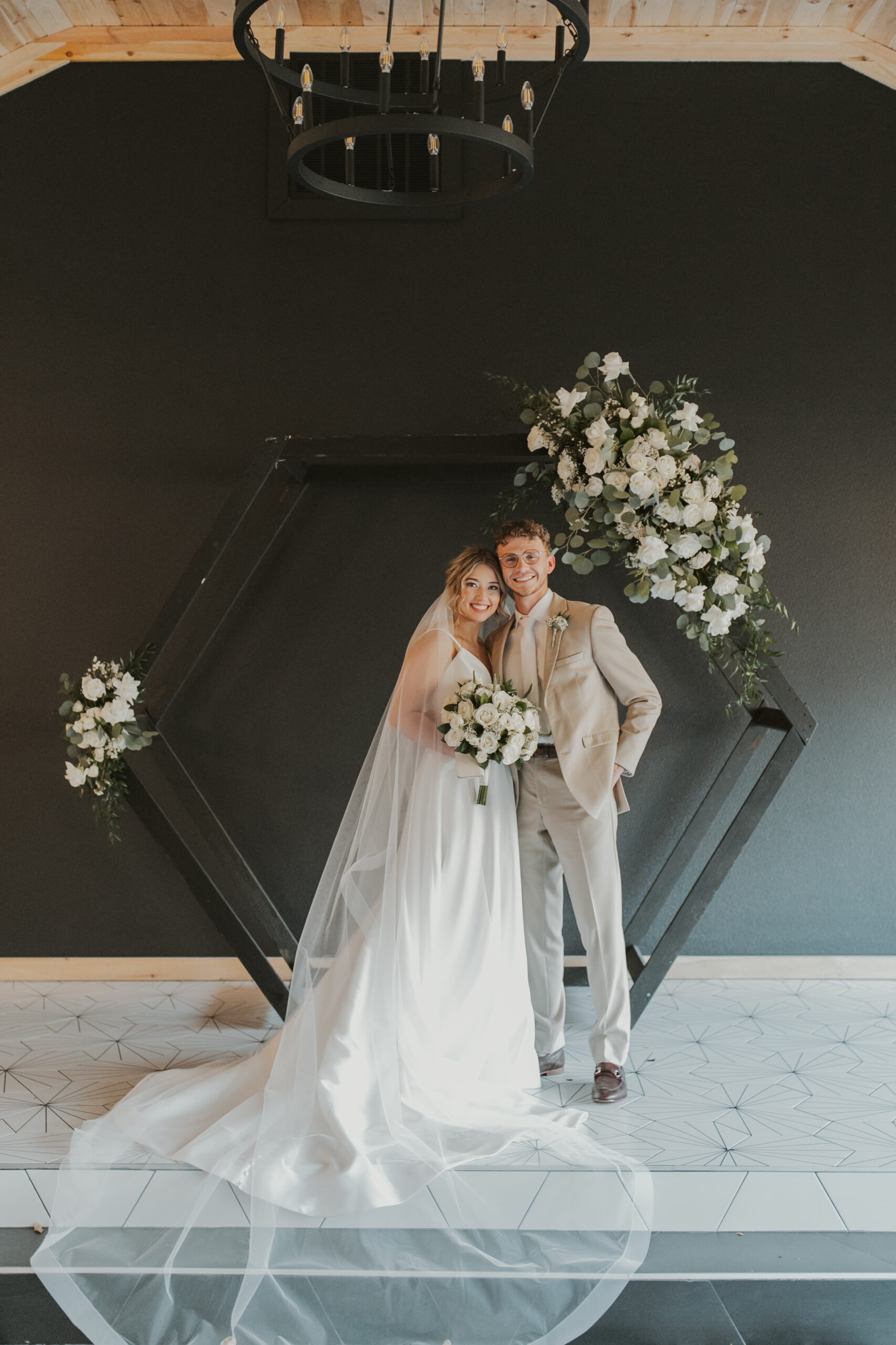 Their ceremony was filled with moments to cherish their love not only with just each other but with the joining of both families together in the stunning modern indoor ceremony space with a black hexagon arch to match!