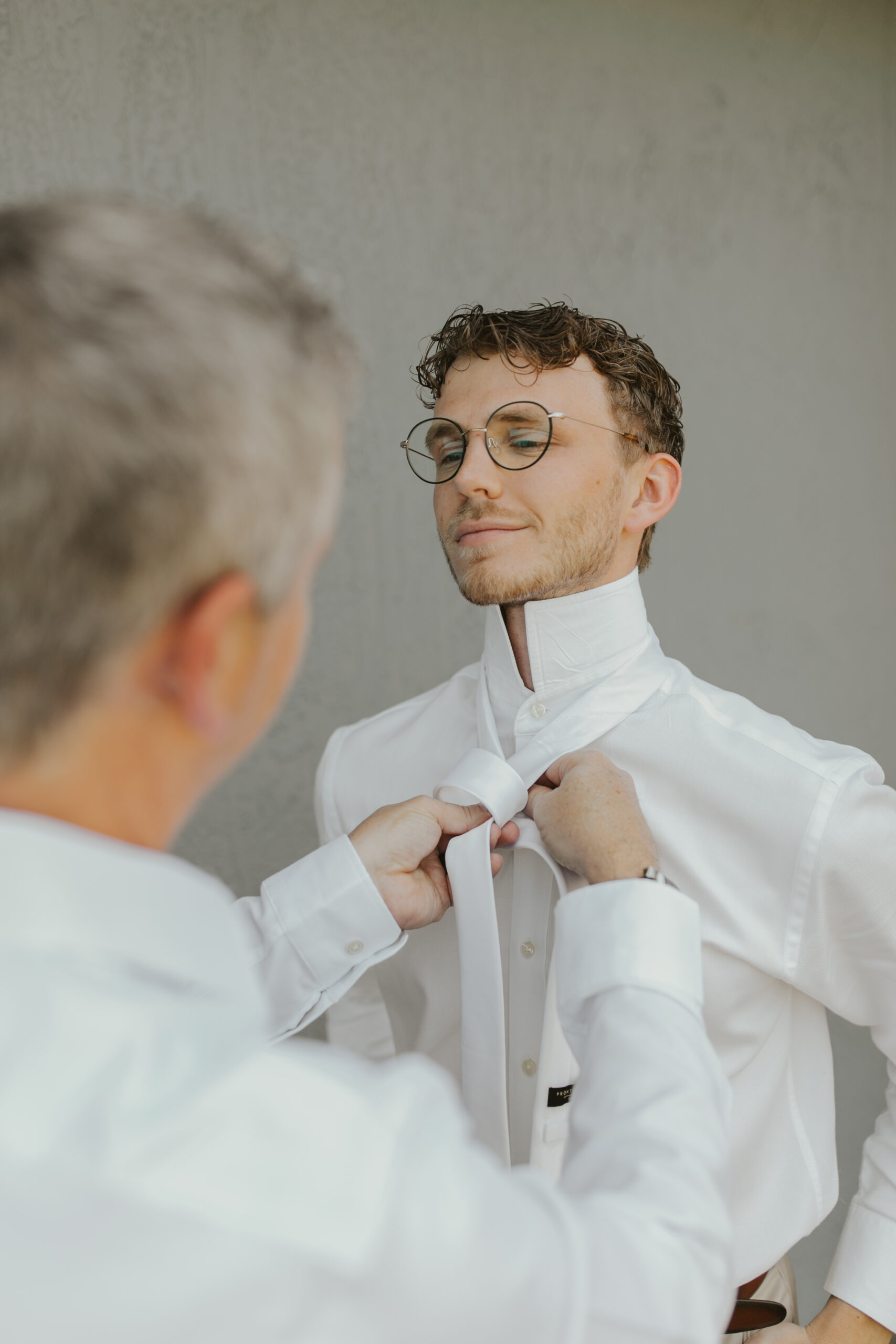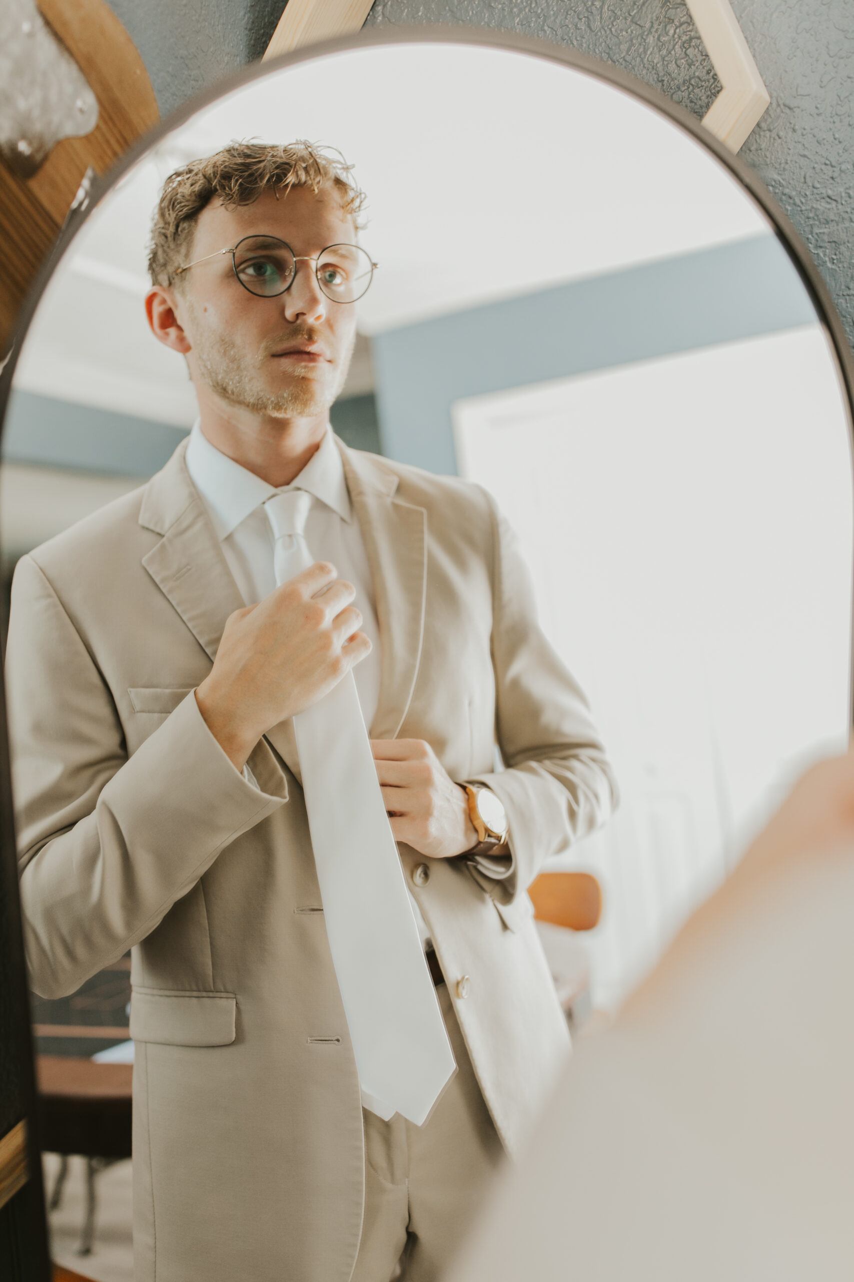 Both bride and groom got ready on the Black Barn property in the bridal suite and groom’s cottage with their closest loved ones including their groomsmen, bridesmaids, and parents! The guys spent some time playing cards before easily getting into their matching tan suits and the ladies getting glammed up by their hair and makeup team while sharing some touching moments with each other!