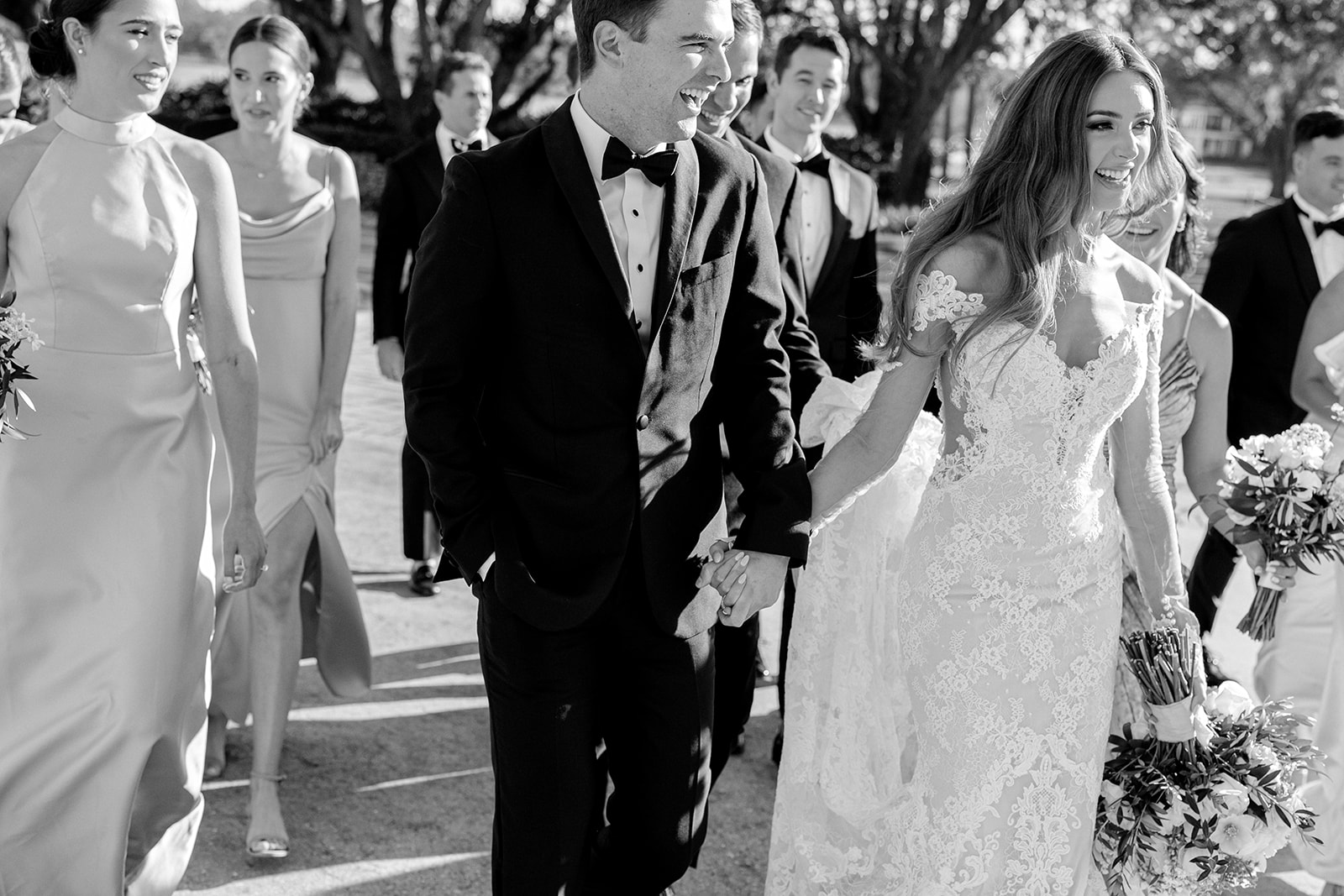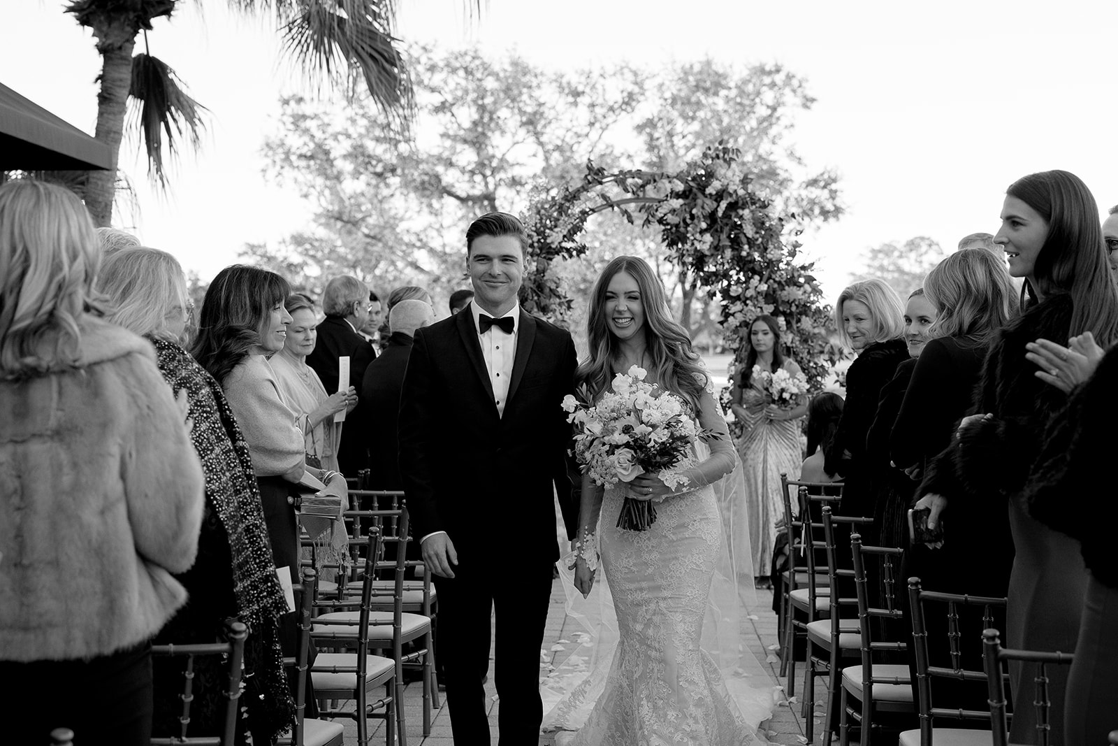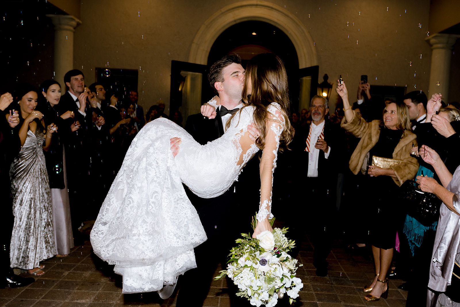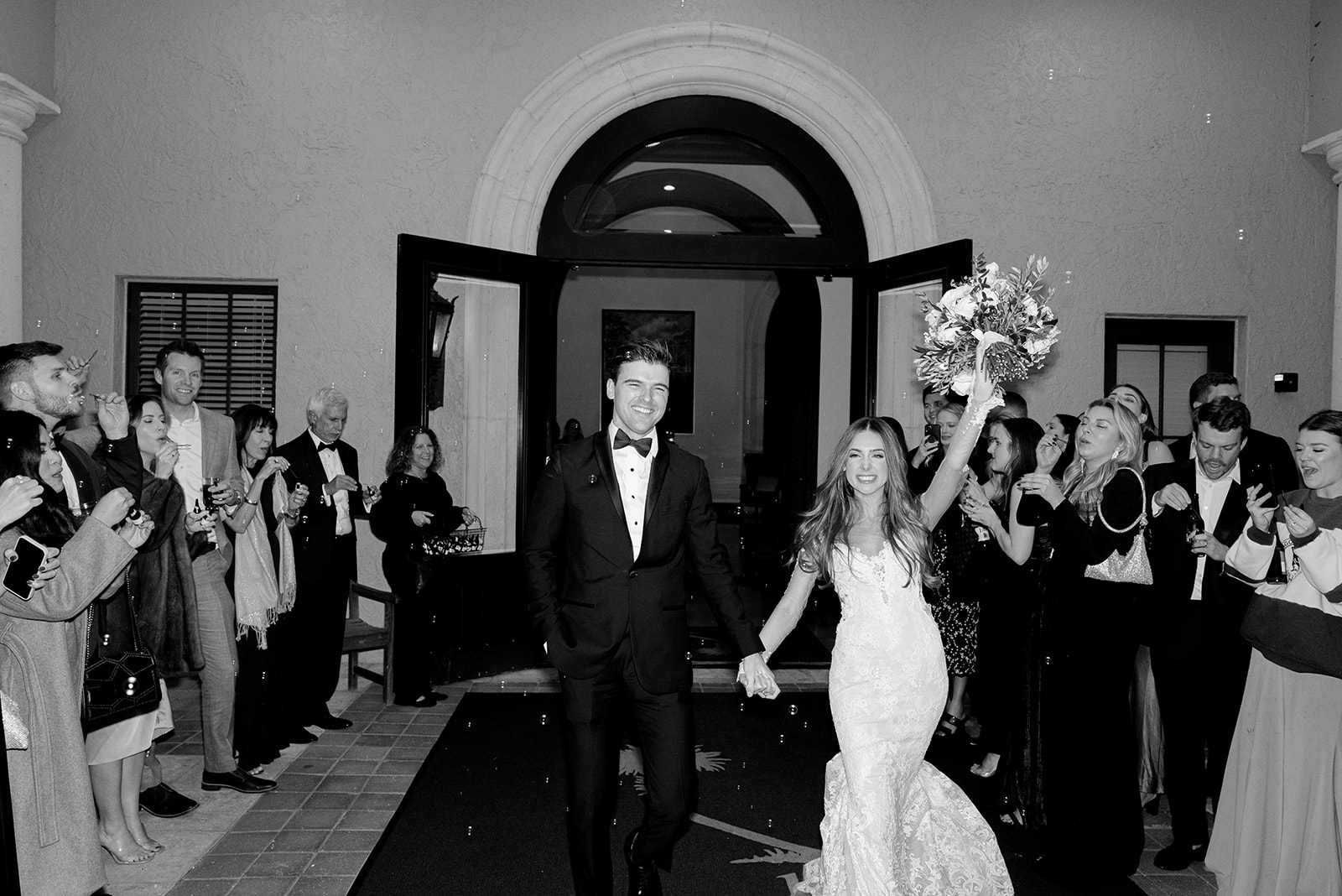 Their country club wedding night ended with a bubble exit through the front doors of the Country Club of Orlando, surrounded by their loved ones.