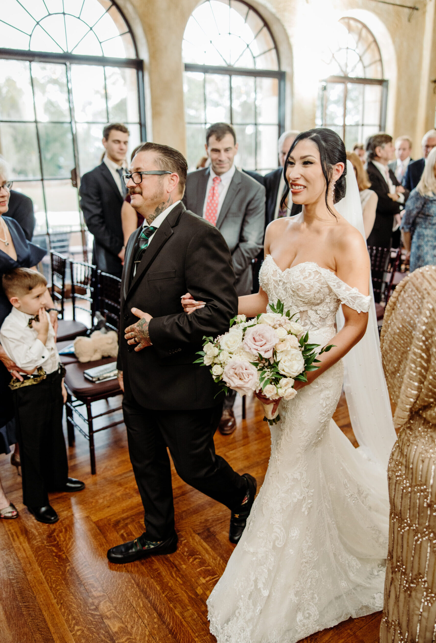 Our Anna Christine Events team’s next feature was February of 2023, with Lydia & Jeffery’s vintage glamour wedding at the beautiful venue, Howey Mansion. The couple’s day was filled with unique decor details with stunning attire from the couple and their guests alike, all captured by the incredible 28 North Photography.