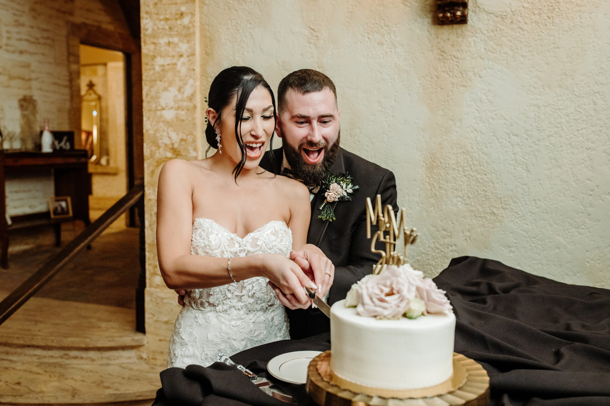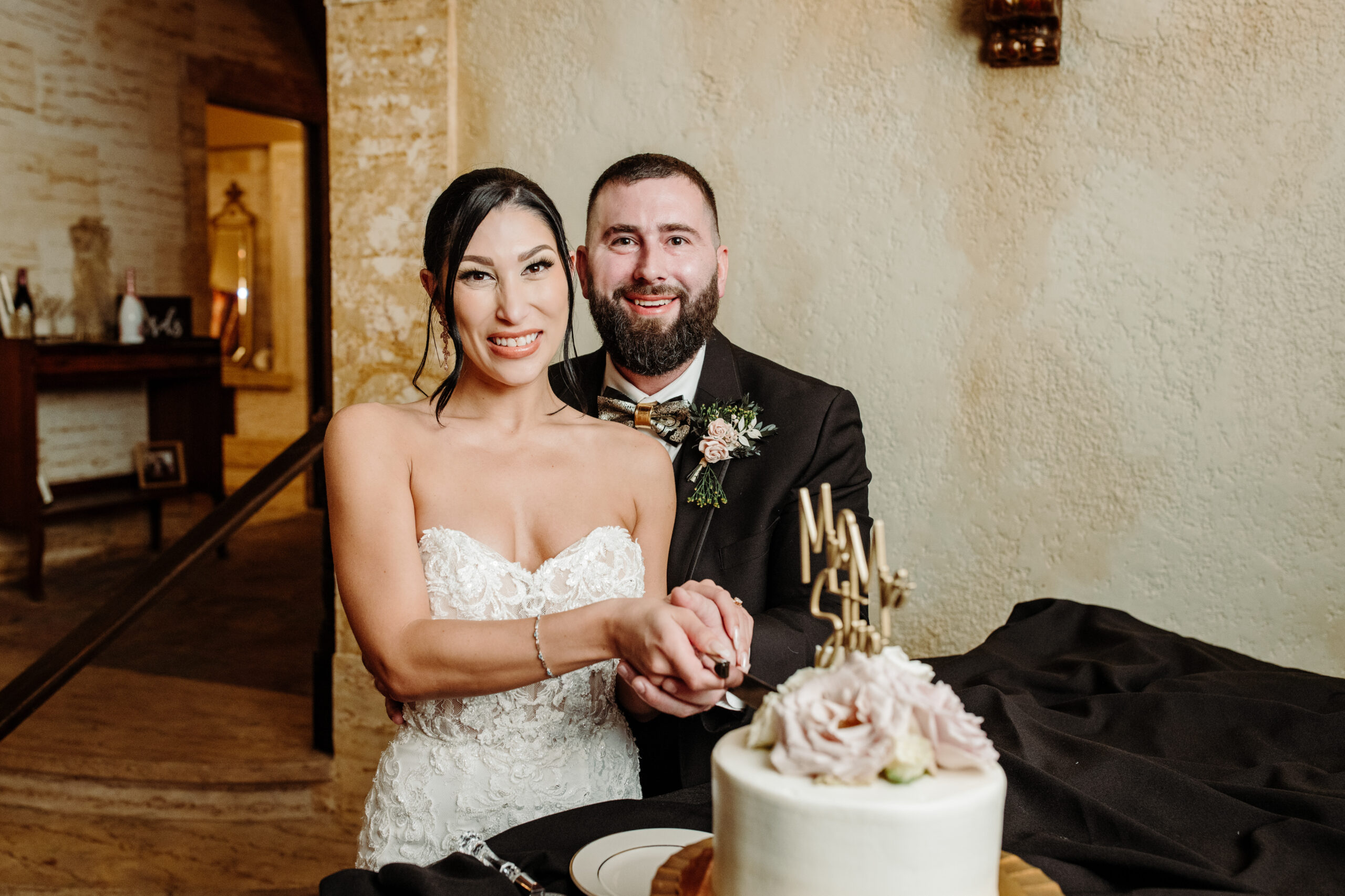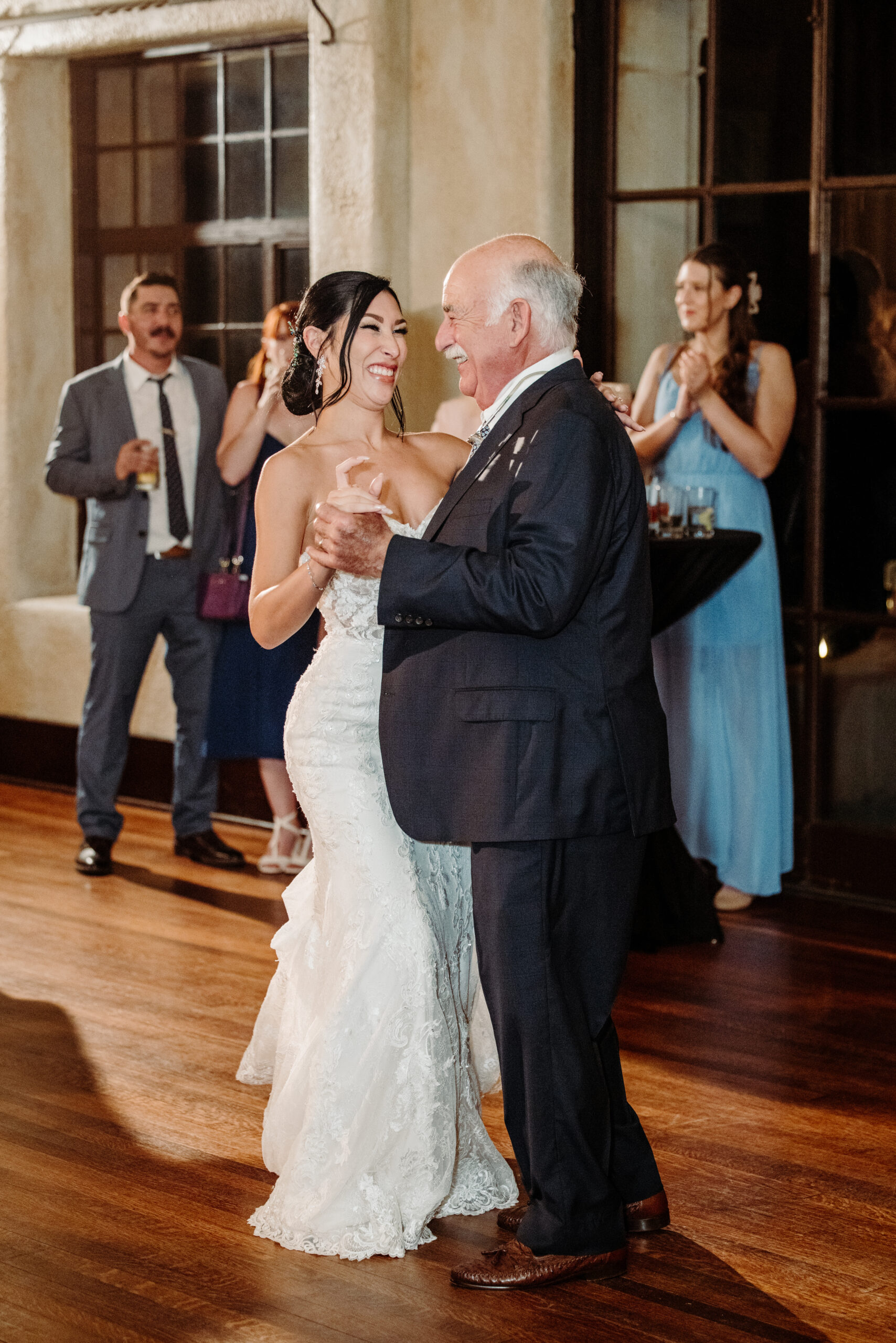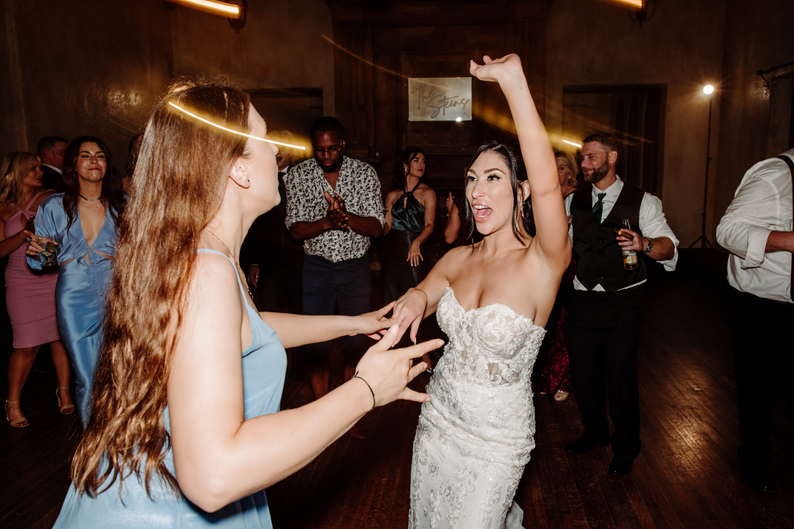 As the sun set over the mansion, guests were invited back into the ballroom for dancing, where vintage elegance gave way to celebration. The room sparkled with golden accents and candlelight as Lydia and Jeffrey shared their first dance, surrounded by the very walls where they said “I do.”