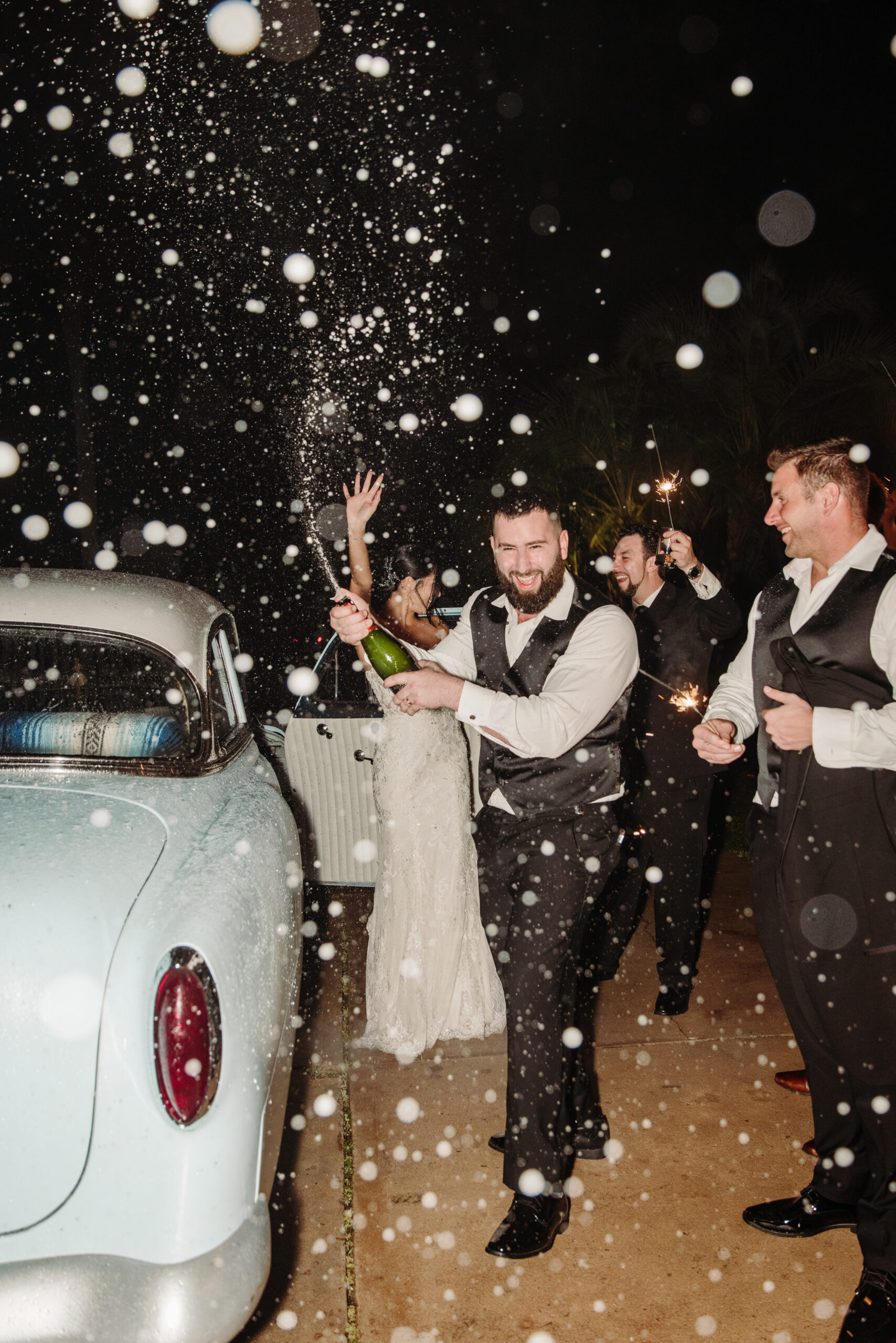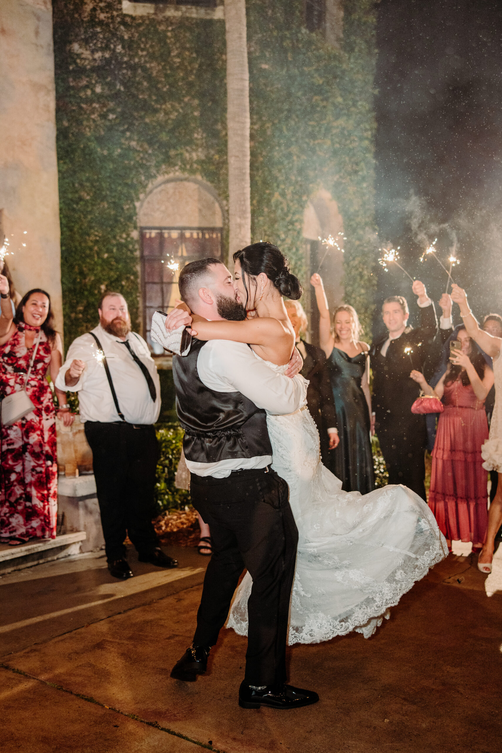 Every detail of the day reflected Lydia and Jeffrey’s unique vision: glamorous, thoughtful, and deeply romantic — a celebration that felt like stepping into a bygone era of elegance, reimagined with a modern heart. Their vintage glamour wedding night ended with a sparkler exit through the wrought-iron front door to their awaiting classic car.
